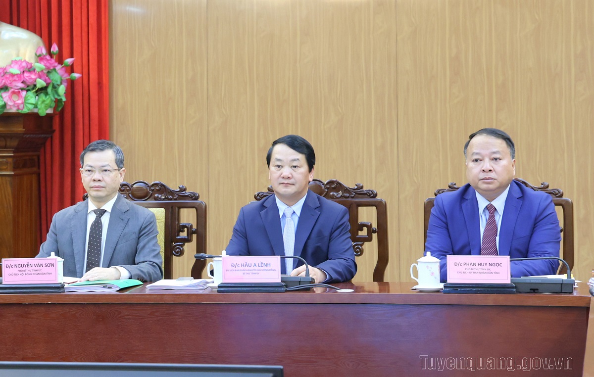 Tại điểm cầu Tuyên Quang, các đồng chí: Hầu A Lềnh, Ủy viên BCH Trung ương Đảng, Bí thư Tỉnh ủy; Nguyễn Văn Sơn, Phó Bí thư Tỉnh ủy, Chủ tịch HĐND tỉnh; Phan Huy Ngọc, Phó Bí thư Tỉnh ủy, Chủ tịch UBND tỉnh dự và chủ trì Hội nghị. Dự Hội nghị có đồng chí Hoàng Gia Long, Ủy viên Ban Thường vụ Tỉnh ủy, Phó Chủ tịch UBND tỉnh; lãnh đạo Đảng ủy UBND tỉnh, thủ trưởng các ban, ngành tỉnh, đơn vị liên quan.