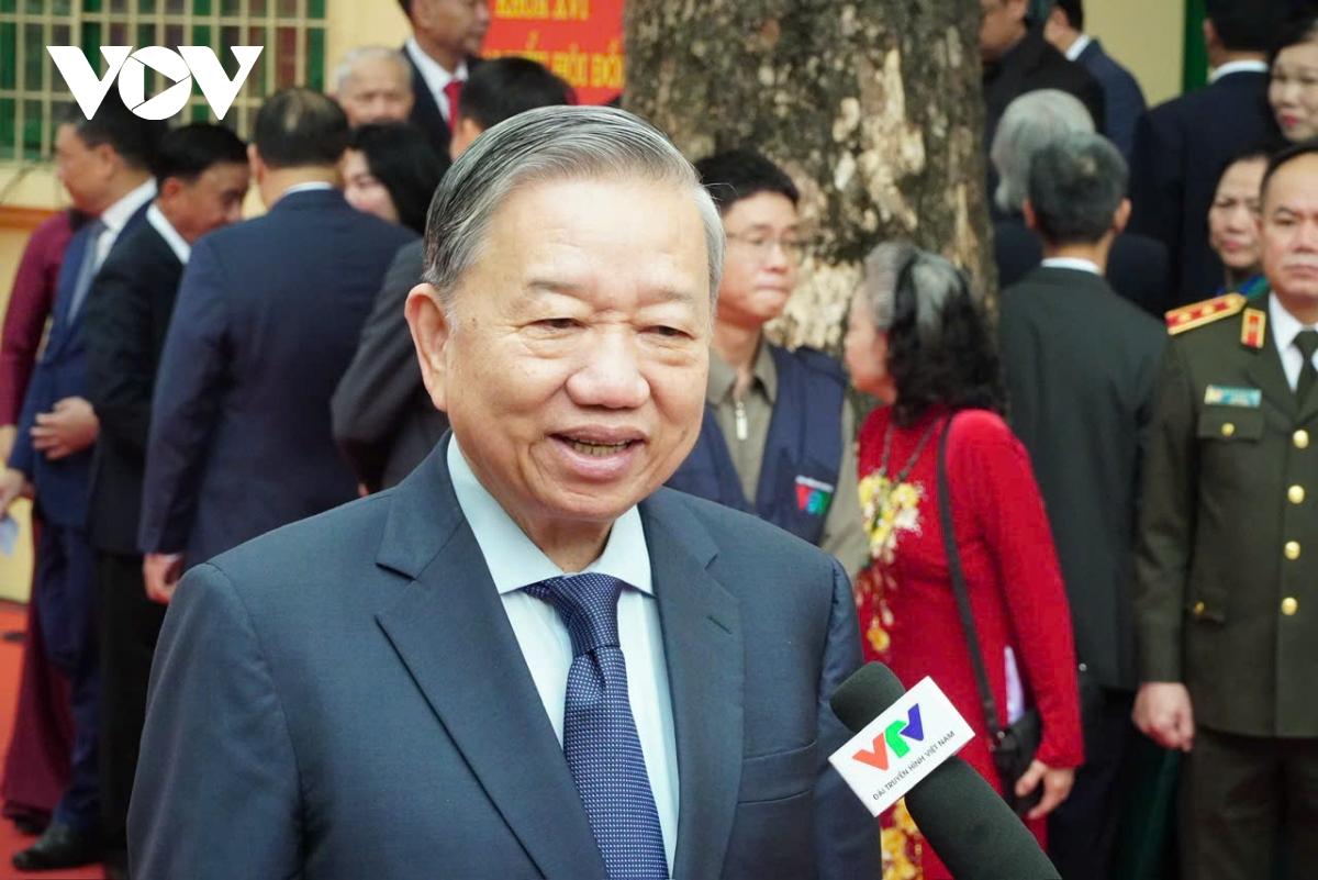 Tổng Bí thư Tô Lâm trả lời phỏng vấn các cơ quan báo chí sau khi thực hiện quyền bầu cử của mình.