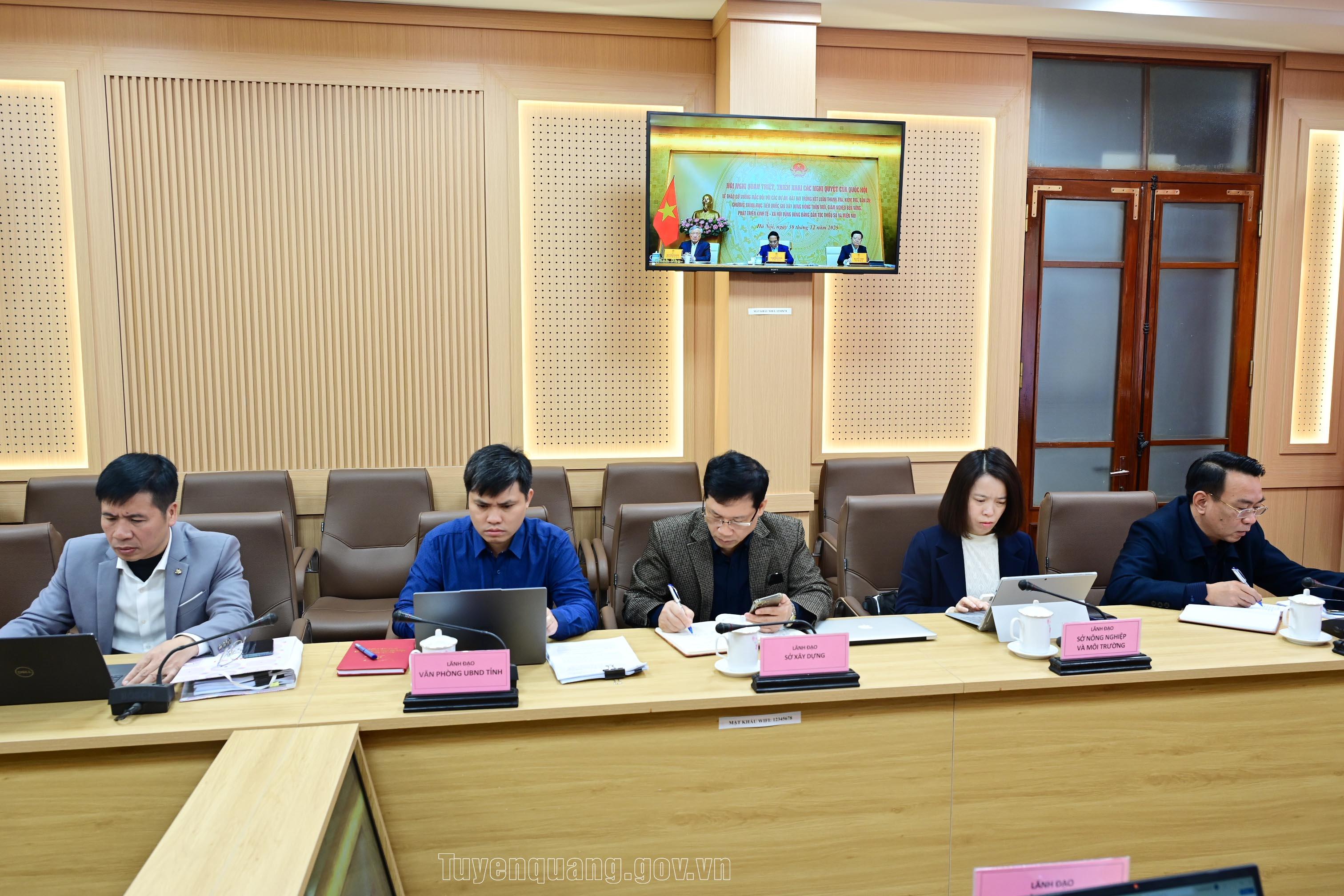 Đồng chí Vương Ngọc Hà, Ủy viên Ban Thường vụ Tỉnh ủy, Phó Chủ tịch UBND tỉnh dự và chủ trì hội nghị tại điểm cầu Tuyên Quang. Cùng dự có lãnh đạo một số sở, ngành, đơn vị liên quan của tỉnh.