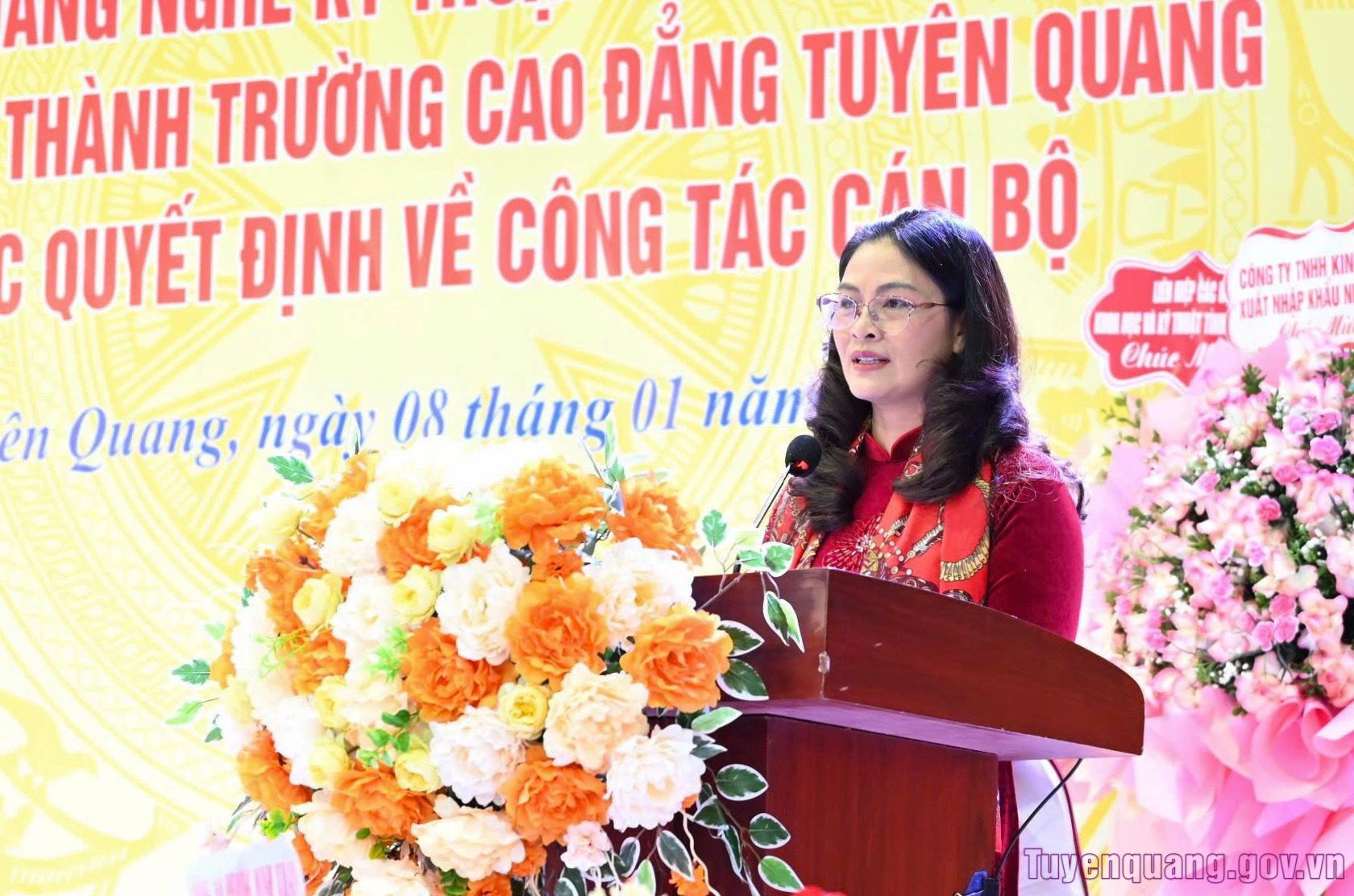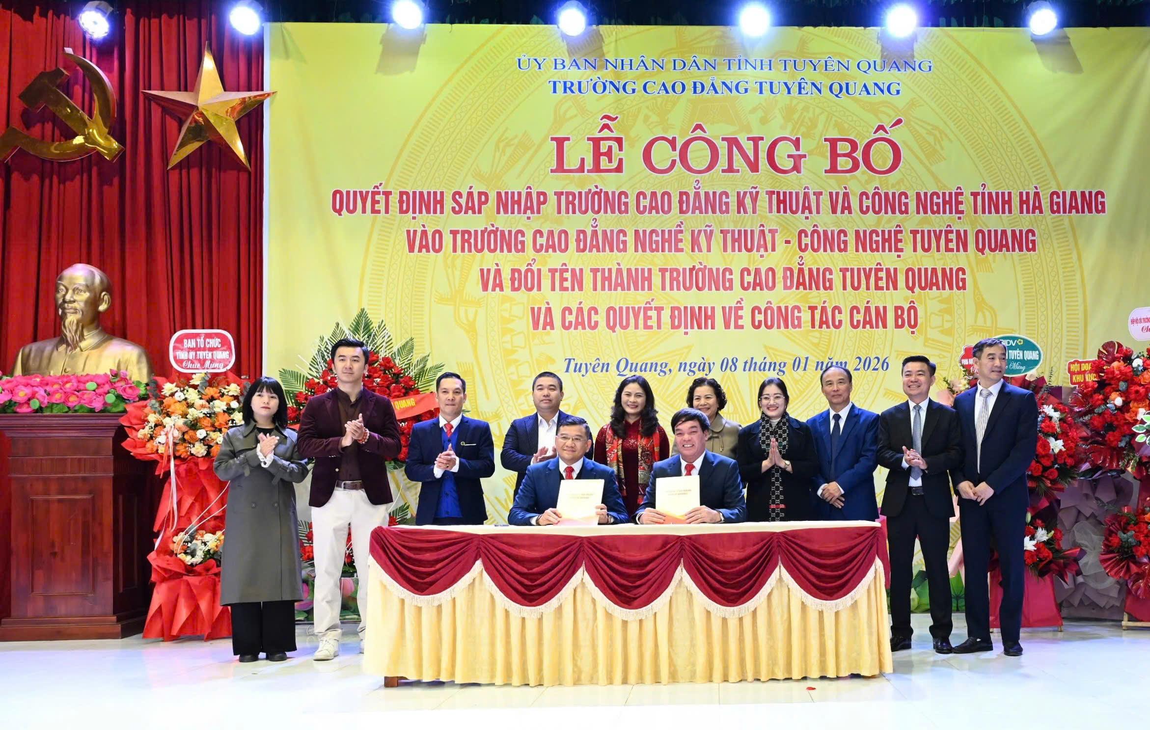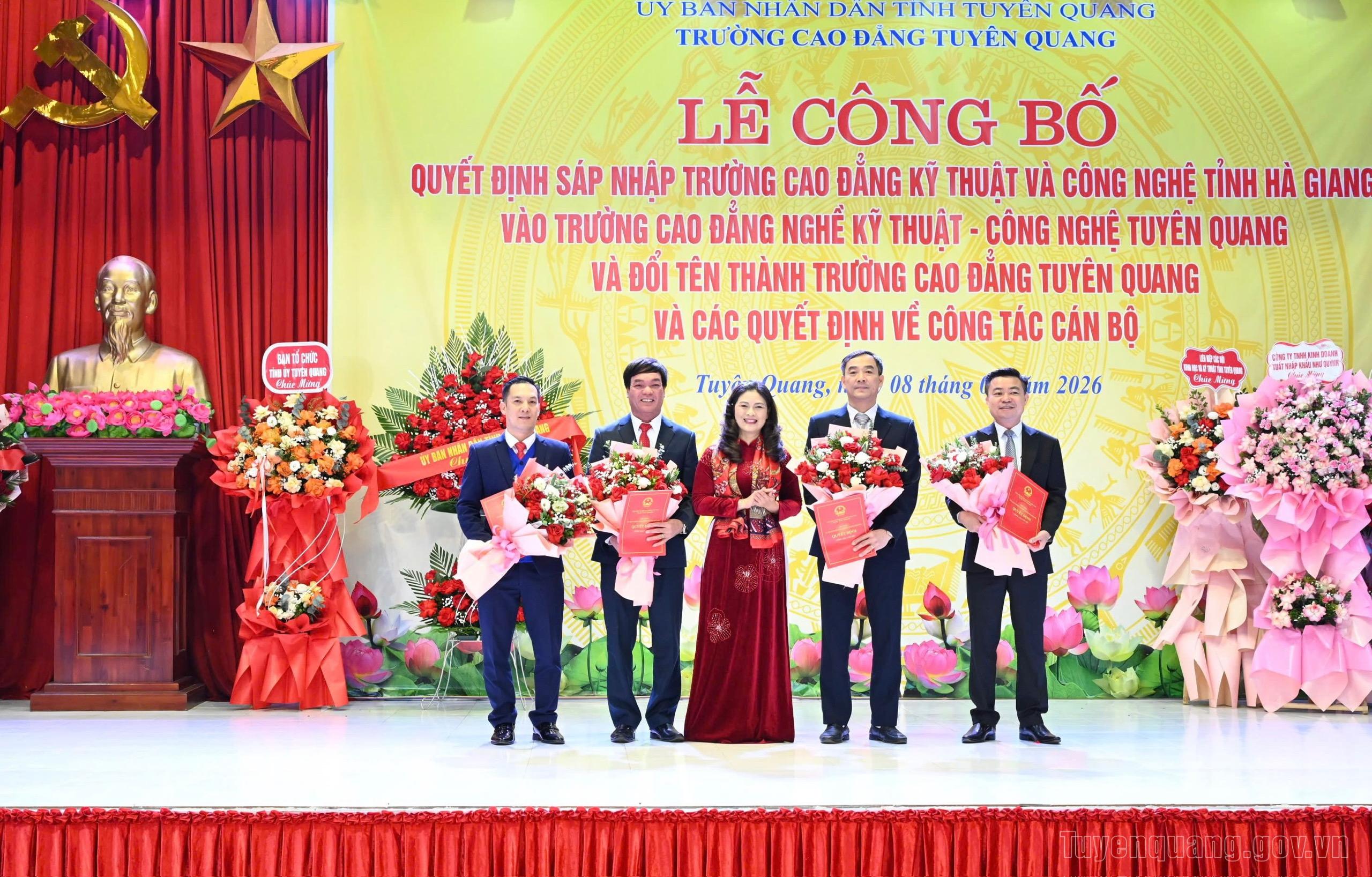 Tại buổi lễ, lãnh đạo Sở Nội vụ đã công bố Quyết định của Bộ Giáo dục và Đào tạo về việc sáp nhập Trường Cao đẳng Kỹ thuật và Công nghệ tỉnh Hà Giang vào Trường Cao đẳng nghề Kỹ thuật - Công nghệ Tuyên Quang và đổi tên thành Trường Cao đẳng Tuyên Quang; công bố các quyết định của Chủ tịch UBND tỉnh về công tác cán bộ.