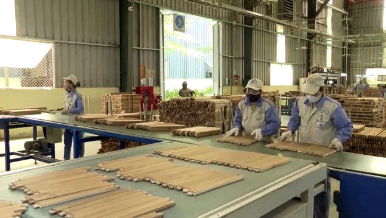 Sản xuất gỗ xuất khẩu tại Công ty Cổ phần Woodsland Tuyên Quang, Cụm công nghiệp Yên Sơn.