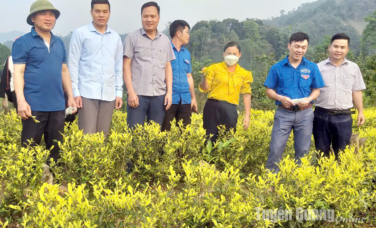 Cán bộ xã Thượng Giáp tìm hiểu mô hình trồng chè vàng tại xã Đường Âm.