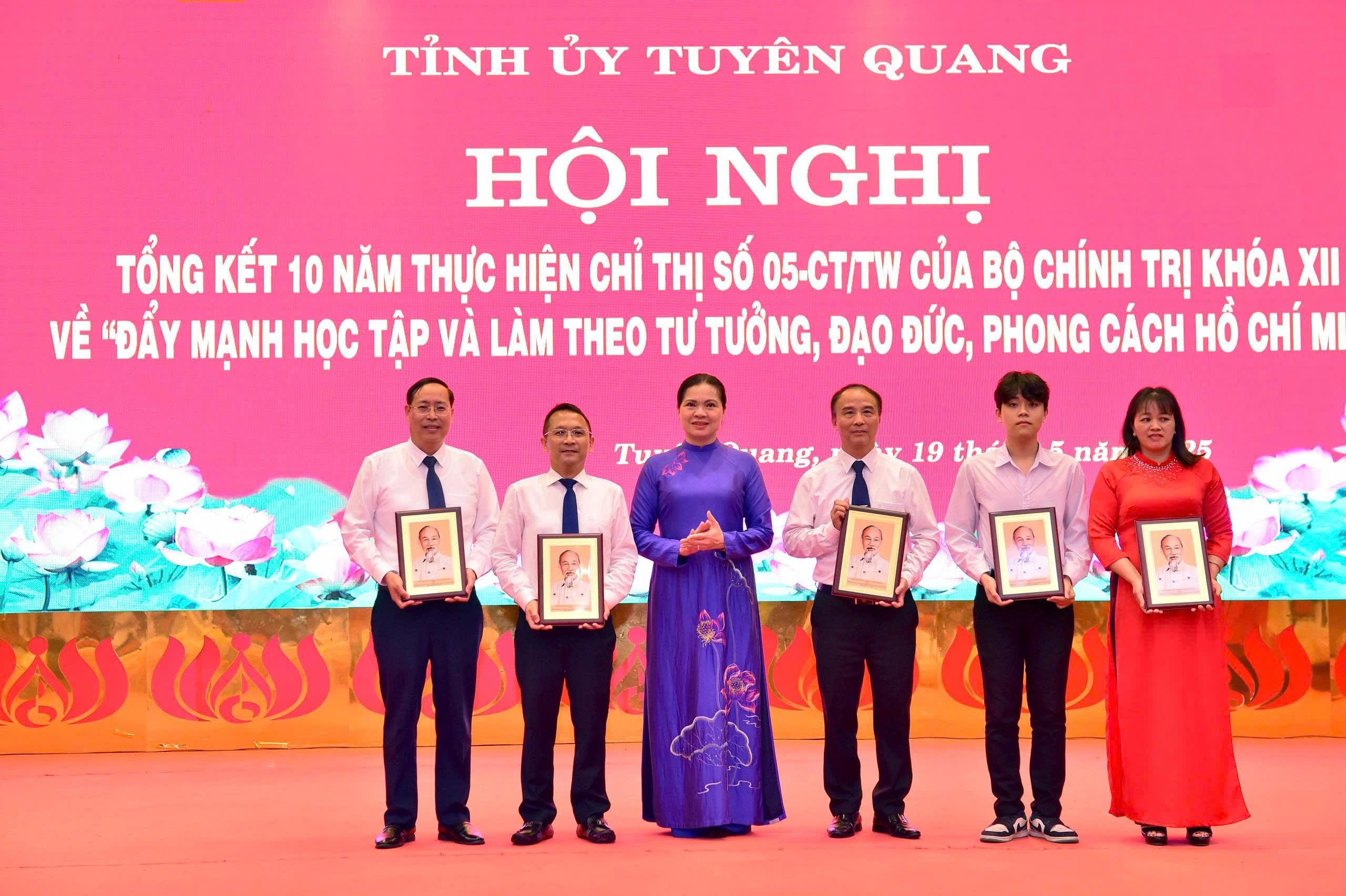 Chú trọng tuyên truyền và nhân rộng các gương người tốt, việc tốt, gương điển hình học tập và làm theo tư tưởng, đạo đức, phong cách Hồ Chí Minh; mô hình hay, cách làm sáng tạo, hiệu quả. Các cơ quan, đơn vị tích cực hưởng ứng và tham gia sáng tác, quảng bá các tác phẩm văn học, nghệ thuật, báo chí về chủ đề “Học tập và làm theo tấm gương đạo đức Hồ Chí Minh” giai đoạn 2016-2025 với hơn 300 tác phẩm; có 01 tập thể và 02 tác giả đạt giải Trung ương; 36 tác phẩm văn học, nghệ thuật, báo chí được xét chọn trao giải thưởng tại tỉnh. Năm 2020, Ban Tuyên giáo Tỉnh ủy đã tổ chức lễ trao giải báo chí; giải sáng tác, quảng bá sản phẩm văn học, nghệ thuật, báo chí về chủ đề “Học tập và làm theo tư tưởng, đạo đức, phong cách Hồ Chí Minh”; giải báo chí tuyên truyền đưa Nghị quyết của Đảng vào cuộc sống, trong đó, đã trao 04 giải A, 09 giải B cho các tập thể và cá nhân đạt giải sáng tác, quảng bá tác phẩm văn học, nghệ thuật, báo chí về chủ đề “Học tập và làm theo tư tưởng, đạo đức, phong cách Hồ Chí Minh”; năm 2023 đạt 01 giải B Giải thưởng sáng tác, quảng bá tác phẩm văn học nghệ thuật và báo chí về chủ đề “Học tập và làm theo tư tưởng, đạo đức, phong cách Hồ Chí Minh giai đoạn 2021-2023” do Ban Tuyên giáo Trung ương tổ chức; giai đoạn 2021-2025, Ban Tuyên giáo Tỉnh ủy trao 01 giải thưởng Quảng bá, 02 giải A, 05 giải B, 08 giải C và 03 giải Khuyến khích; năm 2025, Ban Tuyên giáo và Dân vận Tỉnh ủy, Báo Tuyên Quang là 2 trong số 46 đơn vị xuất sắc toàn quốc trong hoạt động quảng bá tác phẩm văn học, nghệ thuật, báo chí về chủ đề “Học tập và làm theo tư tưởng, đạo đức, phong cách Hồ Chí Minh” đợt 2, giai đoạn 2021-2025 được Ban Tuyên giáo và Dân vận Trung ương tặng Bằng khen, 1 cá nhân đưpcj trao giải C. Trong 10 năm qua, có 8.242 lượt tập thể, cá nhân điển hình học tập và làm theo tư tưởng, đạo đức, phong cách Hồ Chí Minh được các cấp biểu dương, khen thưởng.