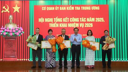 Đồng chí Nghiêm Phú Cường, Phó Chủ nhiệm UBKT Trung ương trao Bằng khen Chiến sỹ thi đua của Cơ quan UBKT Trung ương tặng 05 cá nhân có thành tích tiêu biểu xuất sắc trong phong trào thi đua năm 2025