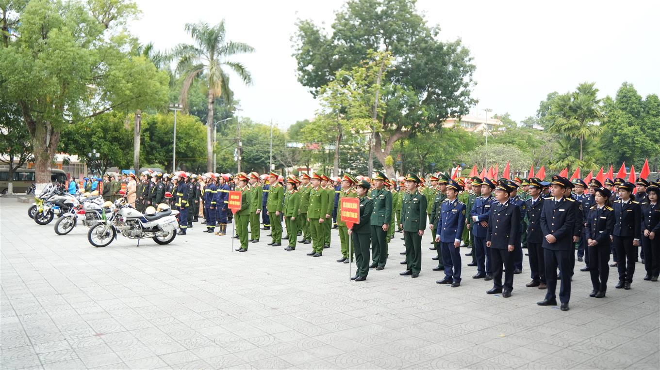 Công an tỉnh Cao Bằng trong buổi ra quân giữ gìn an ninh trật tự trong dịp cuối năm và Tết Nguyên đán Ất Tỵ 2025