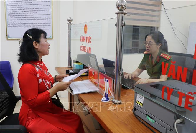 Người dân đến thực hiện các thủ tục hành chính tại Trung tâm phục vụ hành chính công phường Tây Hoa Lư, tỉnh Ninh Bình, sáng 1/7.