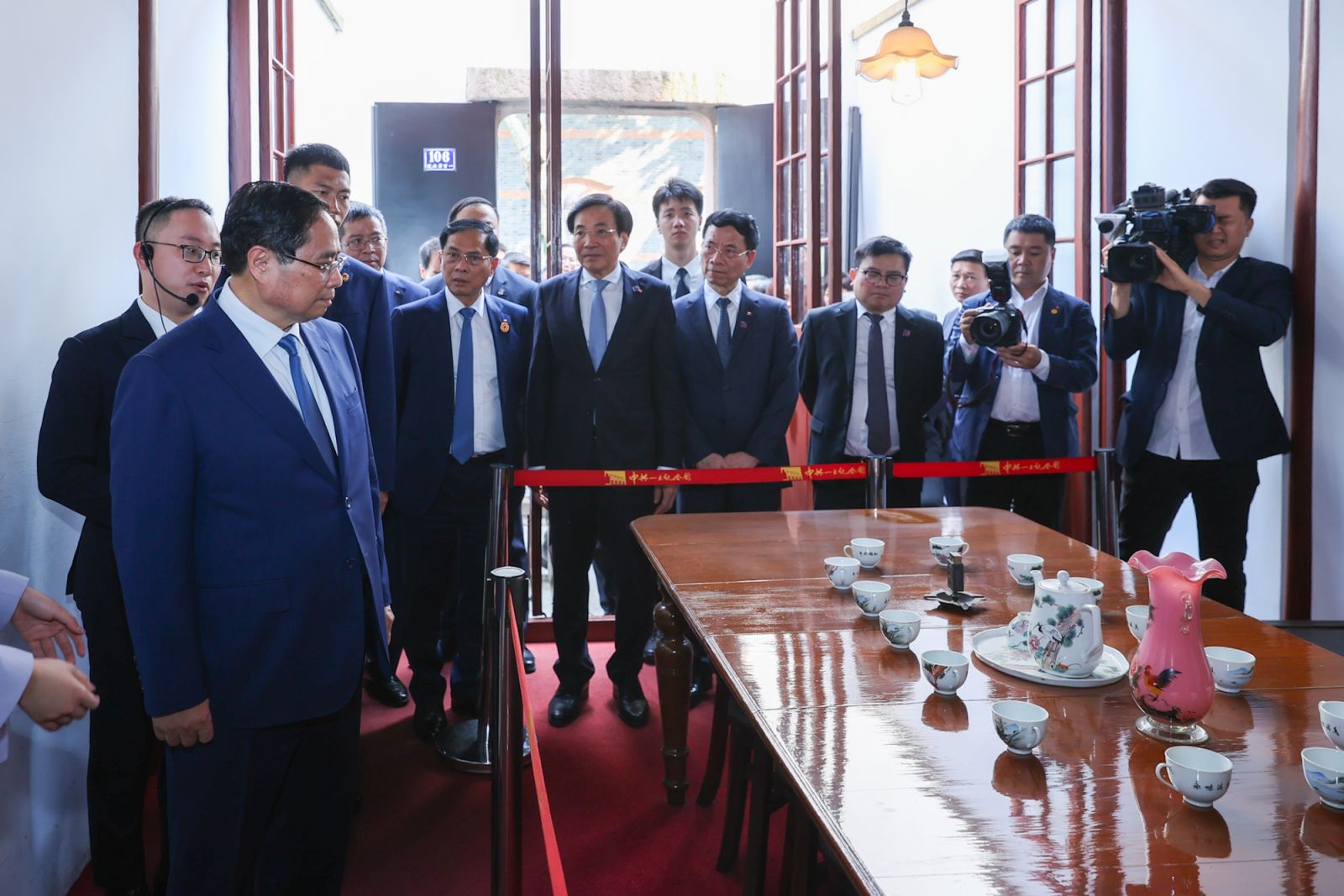 Nhân dịp này, Thủ tướng Phạm Minh Chính đã tới thăm Khu Di tích Đại hội Đại biểu toàn quốc lần thứ nhất của Đảng Cộng sản Trung Quốc tại Thượng Hải. Thủ tướng bày tỏ ngưỡng mộ, chúc mừng, học tập, chia sẻ với những thành tựu nhân văn, to lớn, vĩ đại của Đảng Cộng sản Trung Quốc trong quá trình lãnh đạo cách mạng, xây dựng và phát triển đất nước văn minh, phồn vinh, hài hoà, hiện đại.