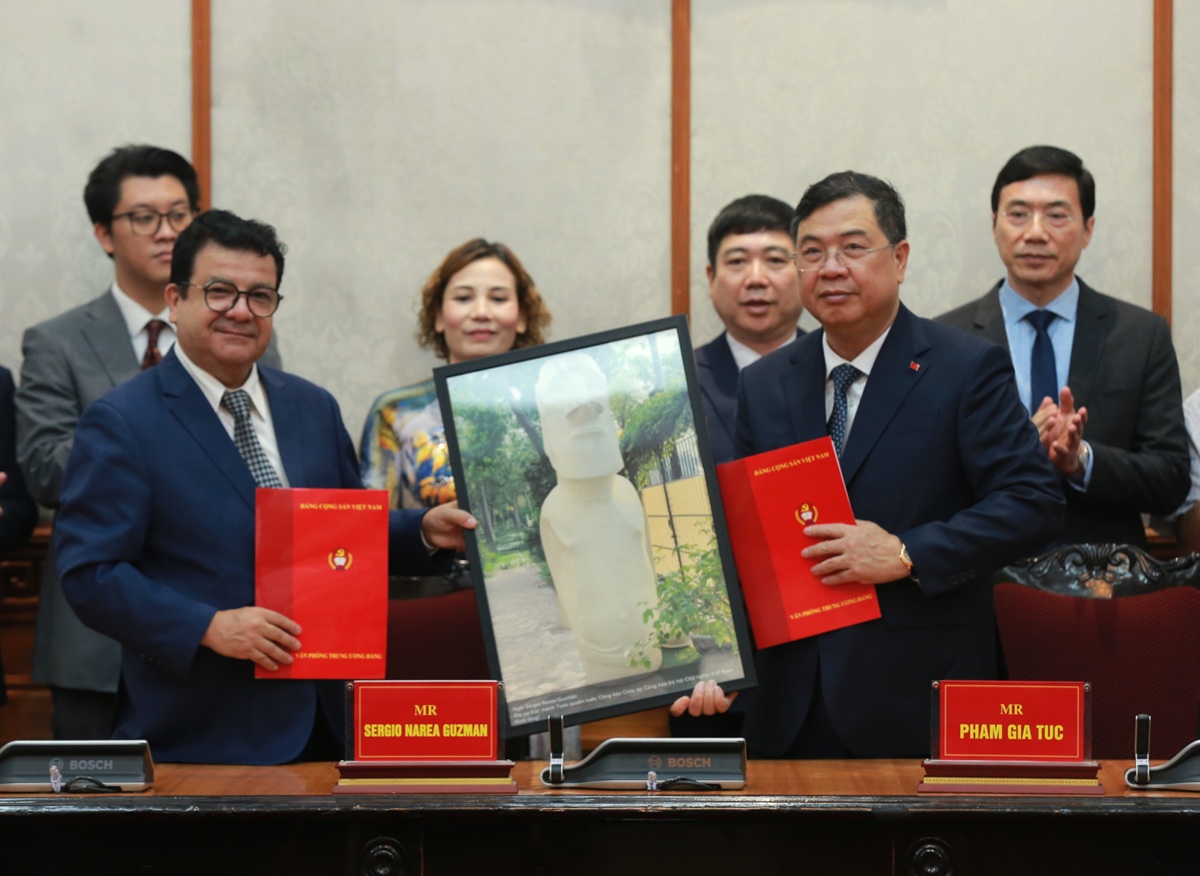Văn phòng Trung ương Đảng tiếp nhận tác phẩm điêu khắc do Đại sứ Chile trao tặng
