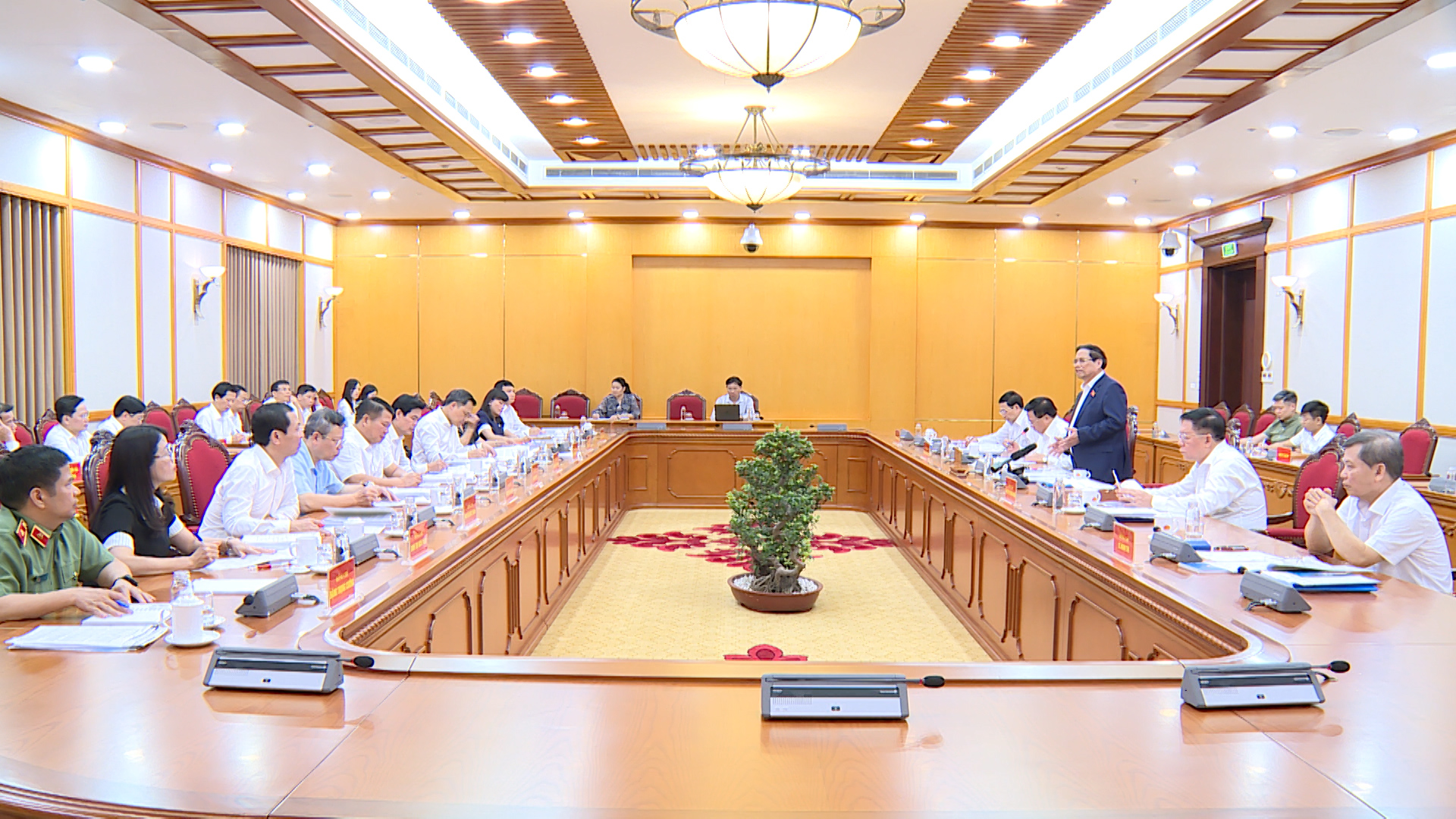 (ĐCSVN) - Chiều 20/8/2025, tại Trụ sở Trung ương Đảng, Tổ công tác số 2 và số 3 của Bộ Chính trị do Thủ tướng Chính phủ Phạm Minh Chính và Chủ tịch Quốc hội Trần Thanh Mẫn chủ trì làm việc với đại diện Ban Thường vụ Tỉnh ủy các tỉnh: Sơn La, Thanh Hóa, Bắc Ninh, Lạng Sơn để cho ý kiến vào dự thảo các văn kiện và phương án nhân sự cấp ủy trình Đại hội đại biểu Đảng bộ các tỉnh nhiệm kỳ 2025 - 2030.