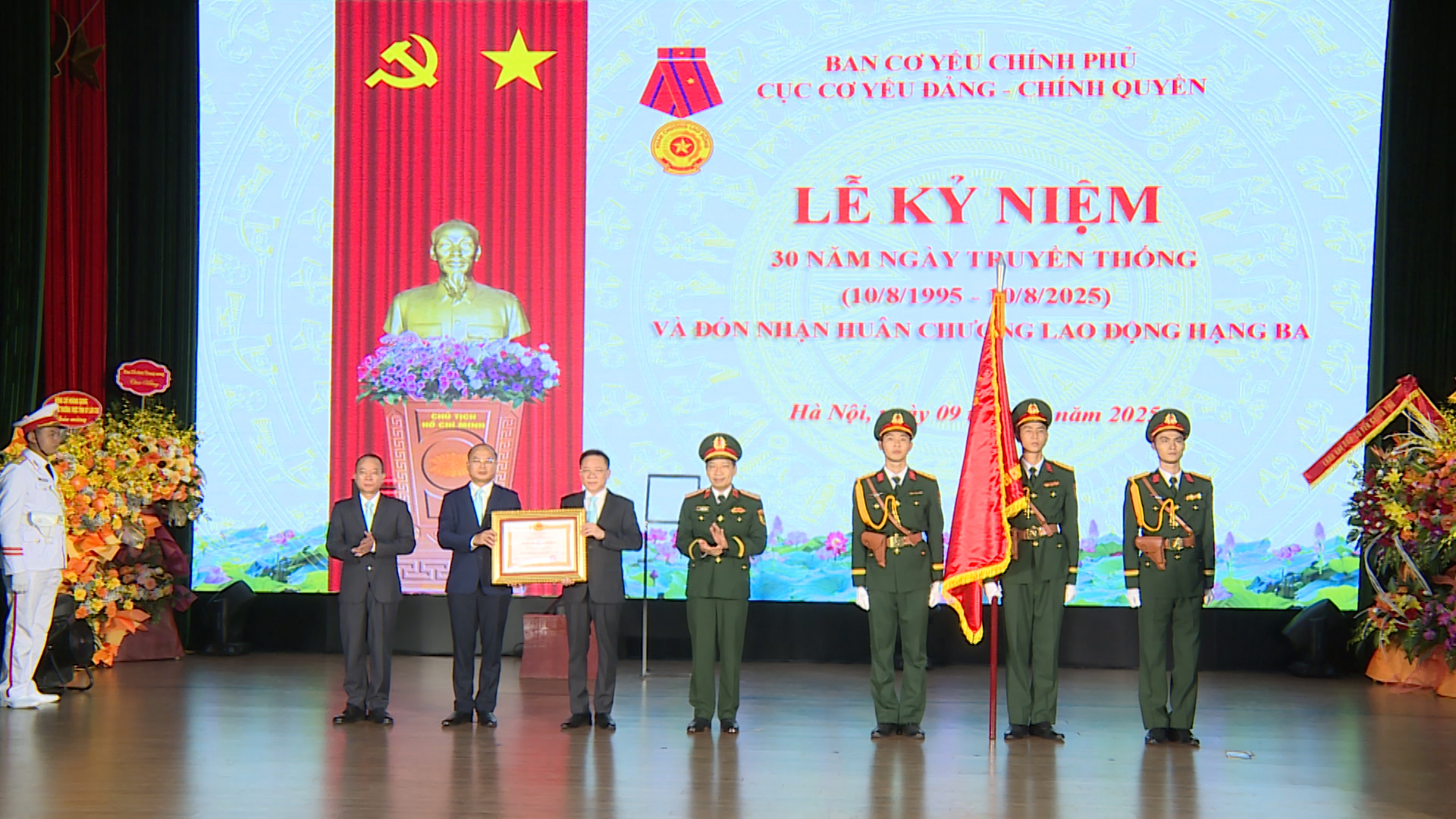 (ĐCSVN) - Sáng 9/8, tại Hà Nội, Cục Cơ yếu Đảng - Chính quyền tổ chức Lễ kỷ niệm 30 năm ngày truyền thống (10/8/1995-10/8/2025) và đón nhận Huân chương Lao động hạng Ba (lần thứ 2). Trung tướng Vũ Ngọc Thiềm, Trưởng ban Ban Cơ yếu Chính phủ dự và phát biểu chỉ đạo.