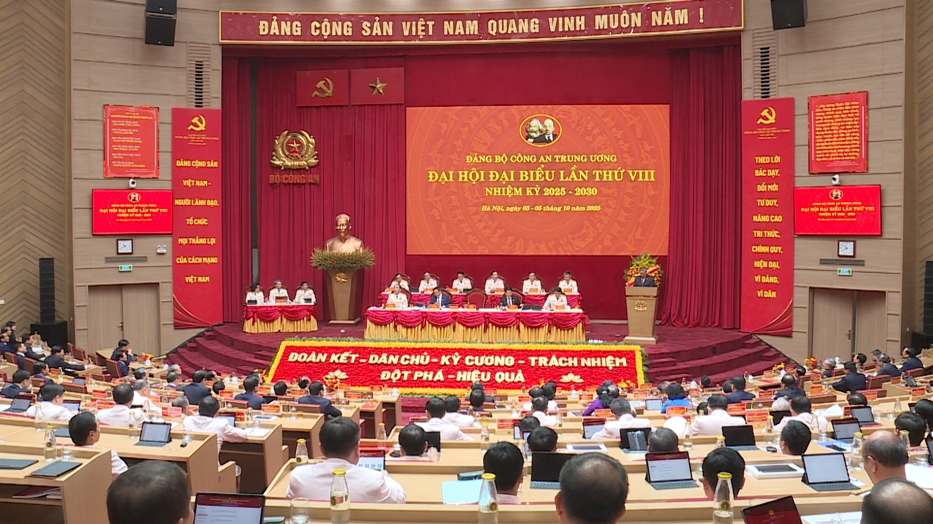 (ĐCSVN) - Sáng 4/10, tại Bộ Công an, Đại hội đại biểu Đảng bộ Công an Trung ương lần thứ VIII, nhiệm kỳ 2025-2030 đã khai mạc trọng thể. Tổng Bí thư Tô Lâm đến dự và chỉ đạo Đại hội. Cùng dự có các đồng chí: Lương Cường, Ủy viên Bộ Chính trị, Chủ tịch nước; Phạm Minh Chính, Ủy viên Bộ Chính trị, Thủ tướng Chính phủ; Trần Thanh Mẫn, Ủy viên Bộ Chính trị, Chủ tịch Quốc hội; Trần Cẩm Tú, Ủy viên Bộ Chính trị, Thường trực Ban Bí thư, các đồng chí lãnh đạo, nguyên lãnh đạo Đảng, Nhà nước, Mặt trận Tổ quốc Việt Nam; lãnh đạo các ban, bộ, ngành Trung ương; lãnh đạo 6 thành phố trực thuộc Trung ương; các đồng chí lãnh đạo, nguyên lãnh đạo Đảng ủy Công an Trung ương, Bộ Công an và 350 đại biểu ưu tú đại diện cho trí tuệ, bản lĩnh chính trị, ý chí niềm tin và nguyện vọng của đảng viên trong toàn Đảng bộ Công an Trung ương.