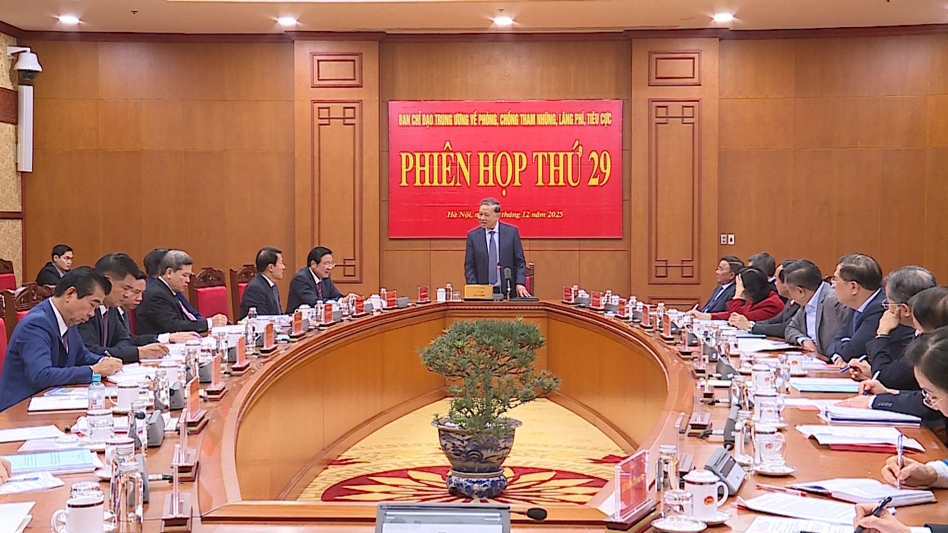 (ĐCSVN) - Chiều 25/12, tại Trụ sở Trung ương Đảng, Ban Chỉ đạo Trung ương về phòng, chống tham nhũng, lãng phí, tiêu cực (Ban Chỉ đạo) đã họp Phiên thứ 29 để thảo luận, cho ý kiến về kết quả hoạt động năm 2025 và Chương trình công tác năm 2026 của Ban Chỉ đạo. Tổng Bí thư Tô Lâm, Trưởng Ban Chỉ đạo chủ trì Phiên họp.