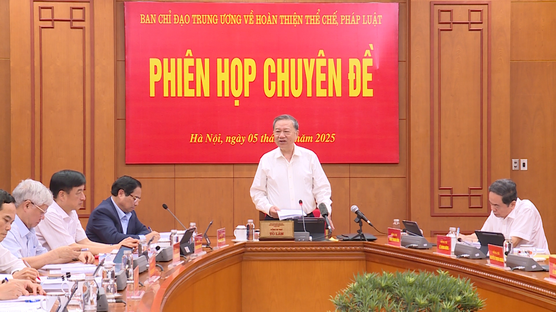 (ĐCSVN) – Ngày 05/8/2025, tại Hà Nội, Ban Chỉ đạo Trung ương về hoàn thiện thể chế, pháp luật đã tổ chức Phiên họp chuyên đề dưới sự chủ trì của đồng chí Tổng Bí thư Tô Lâm, Trưởng Ban Chỉ đạo.