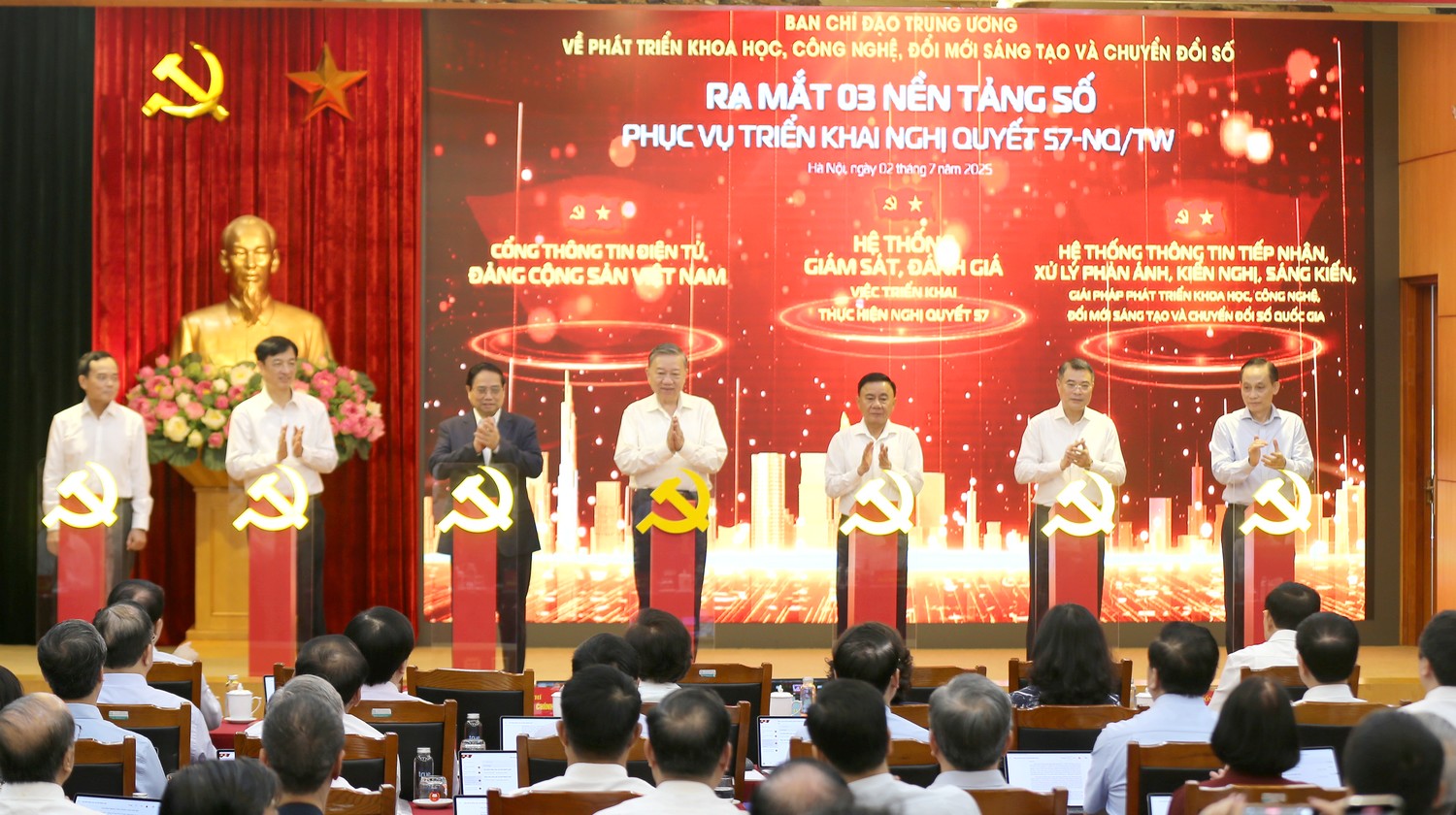 (ĐCSVN) – Sáng 2/7, tại Hội nghị trực tuyến sơ kết công tác 6 tháng đầu năm 2025 của Ban Chỉ đạo Trung ương về phát triển khoa học, công nghệ, đổi mới sáng tạo và chuyển đổi số, Tổng Bí thư Tô Lâm - Trưởng Ban Chỉ đạo Trung ương; Thủ tướng Chính phủ Phạm Minh Chính cùng các đồng chí lãnh đạo đã bấm nút ra mắt 3 nền tảng số trọng điểm, phục vụ trực tiếp việc triển khai Nghị quyết số 57-NQ/TW của Bộ Chính trị.