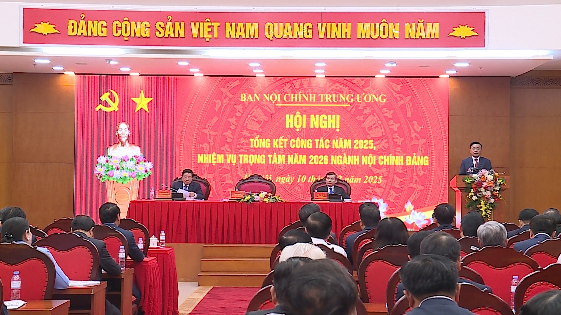 (ĐCSVN) - Chiều 10/12, Ban Nội chính Trung ương tổ chức Hội nghị tổng kết công tác ngành Nội chính Đảng năm 2025, phương hướng, nhiệm vụ năm 2026. Đồng chí Trần Cẩm Tú, Ủy viên Bộ Chính trị, Thường trực Ban Bí thư dự và phát biểu chỉ đạo Hội nghị.