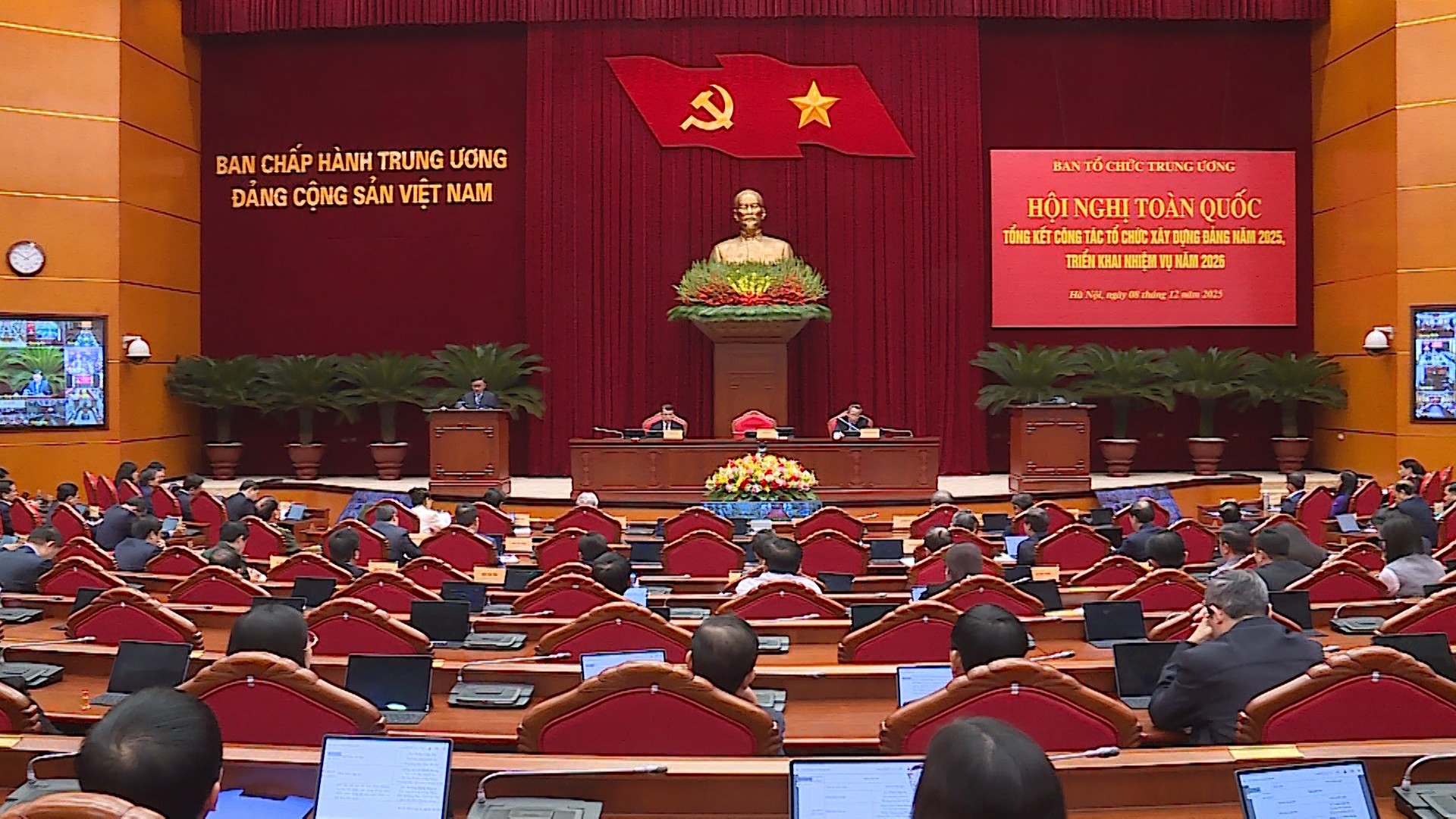 (ĐCSVN) - Sáng 8/12, tại Trụ sở Trung ương Đảng, Ban Tổ chức Trung ương tổ chức Hội nghị toàn quốc tổng kết công tác tổ chức xây dựng Đảng năm 2025 và triển khai nhiệm vụ năm 2026. Đồng chí Trần Cẩm Tú, Ủy viên Bộ Chính trị, Thường trực Ban Bí thư dự và chỉ đạo Hội nghị.