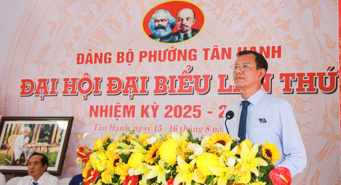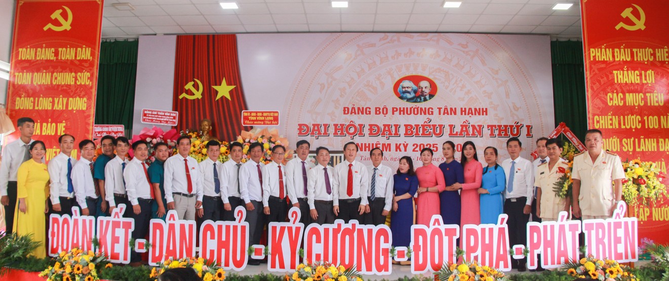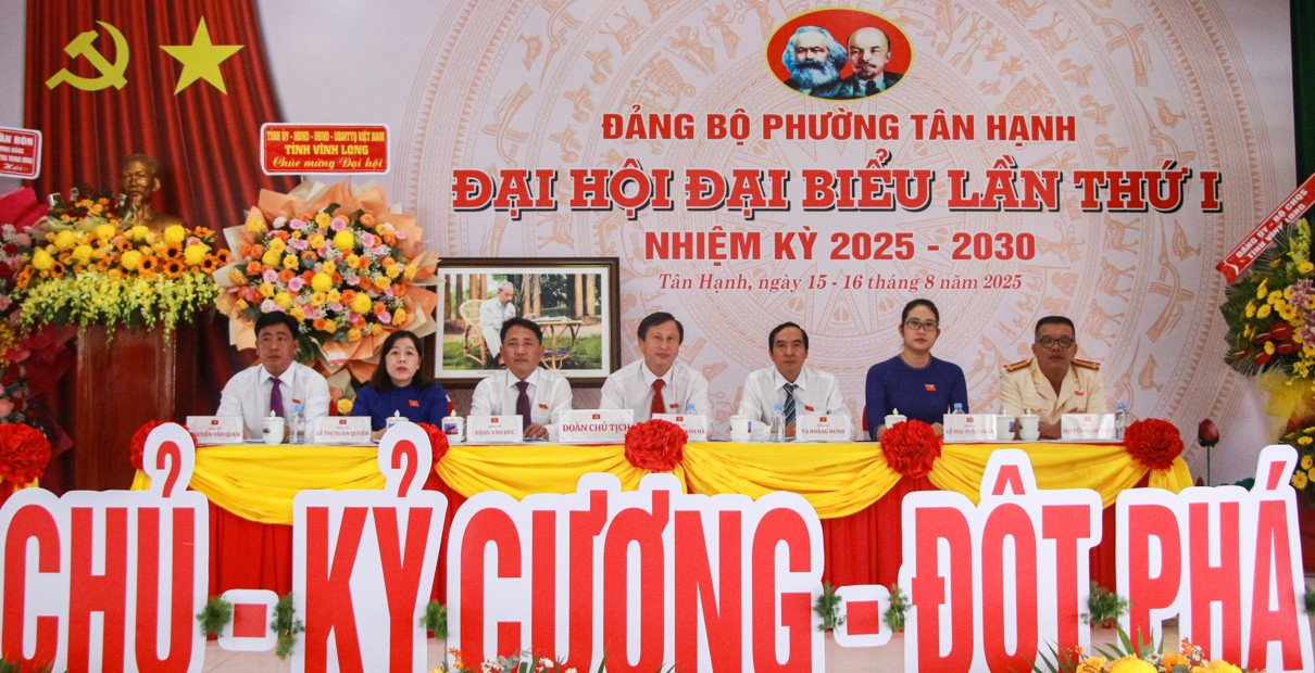 (Vinhlong.gov.vn) – Ngày 16/8/2025, Đảng bộ phường Tân Hạnh (tỉnh Vĩnh Long) long trọng tổ chức Đại hội Đại biểu lần thứ I, nhiệm kỳ 2025 – 2030. Đến dự Đại hội có Ủy viên Ban Chấp hành Trung ương Đảng – Phó Chủ nhiệm Trường trực Ủy ban Kiểm tra Trung ương Trần Văn Rón; Ủy viên Thường vụ Tỉnh ủy - Phó Chủ tịch Thường trực UBND tỉnh Đặng Văn Chính.