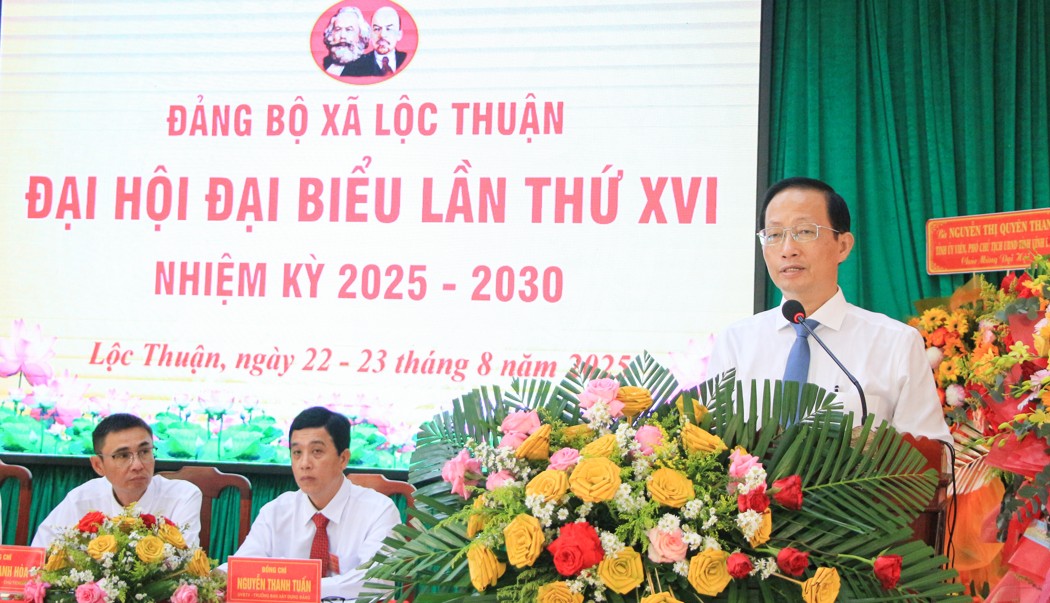 Thay mặt Ban Thường vụ Tỉnh ủy, Phó Chủ tịch UBND tỉnh Nguyễn Trúc Sơn biểu dương và ghi nhận những thành tích mà Đảng bộ, chính quyền và Nhân dân xã Lộc Thuận đã đạt được trong thời gian qua. Về mục tiêu, chỉ tiêu, nhiệm vụ và giải pháp Đảng bộ xã đề ra trong nhiệm kỳ tới, Phó Chủ tịch UBND tỉnh cơ bản thống nhất, đồng thời gợi mở, định hướng thêm một số vấn đề cần tập trung thực hiện.