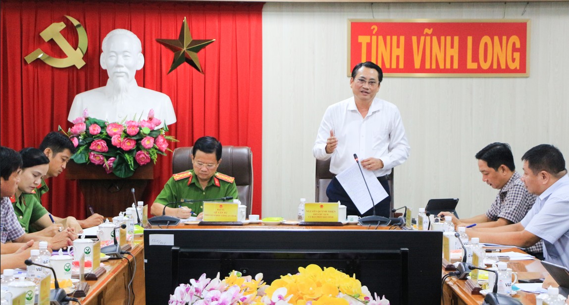 Phó Chủ tịch UBND tỉnh Nguyễn Quỳnh Thiện và Đại tá Lê Văn Tư – Phó Giám đốc Công an tỉnh đồng chủ trì cuộc họp với các đơn vị liên quan nhằm tháo gỡ khó khăn.