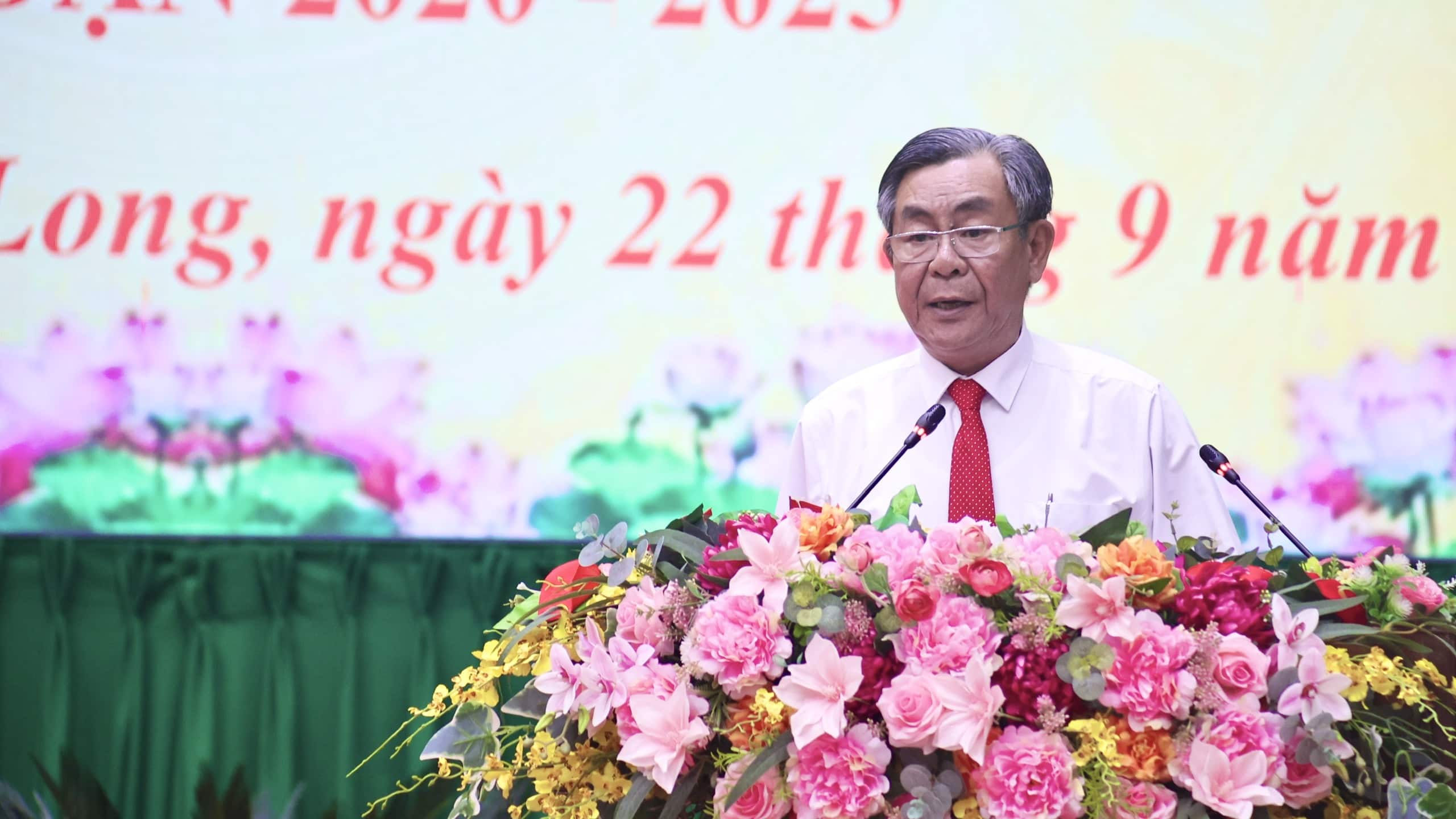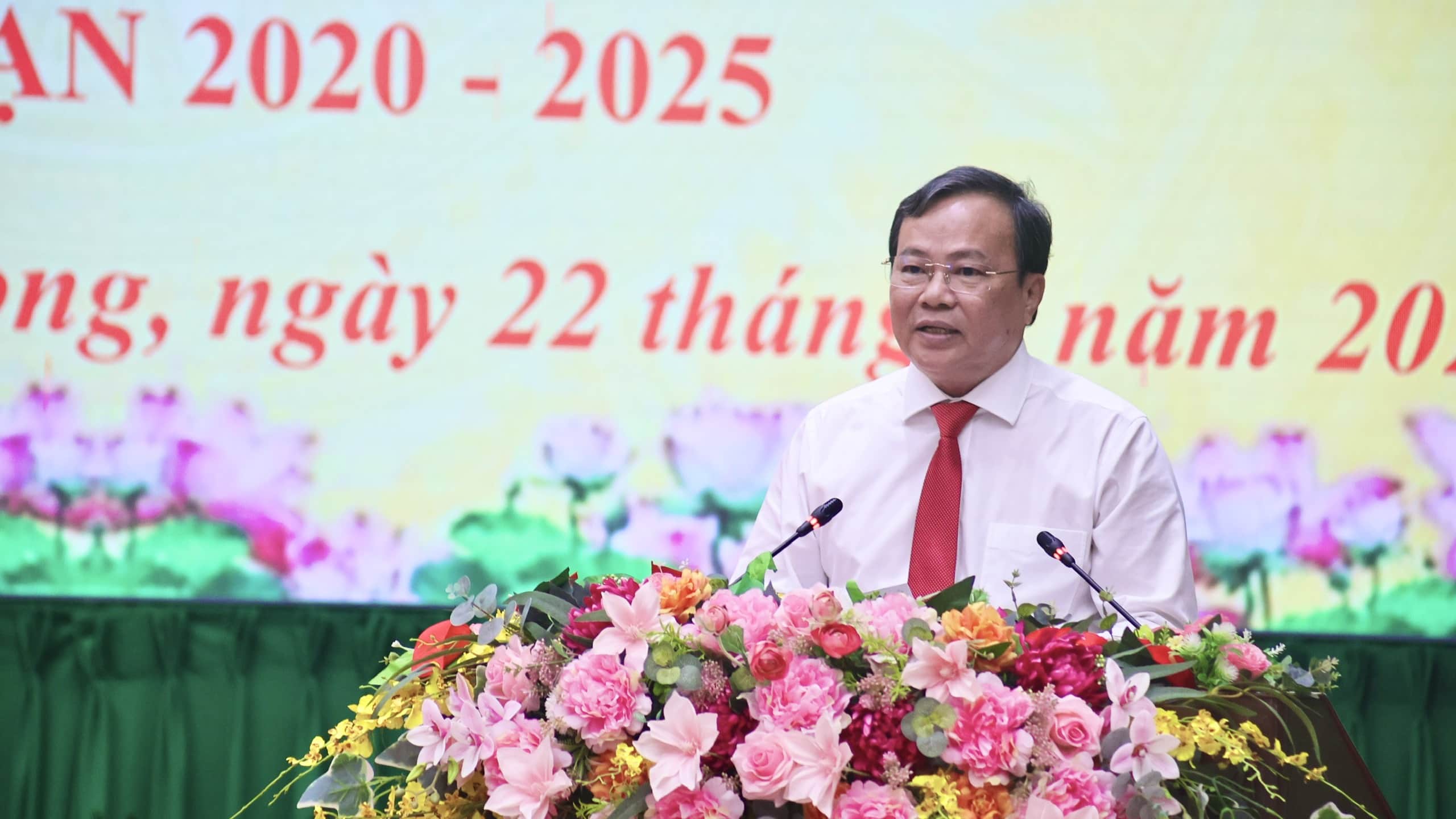 Đồng chí Lê Văn Hẳn, Phó Bí thư Tỉnh ủy, Chủ tịch Ủy ban MTTQVN tỉnh phát biểu kết luận hội nghị.