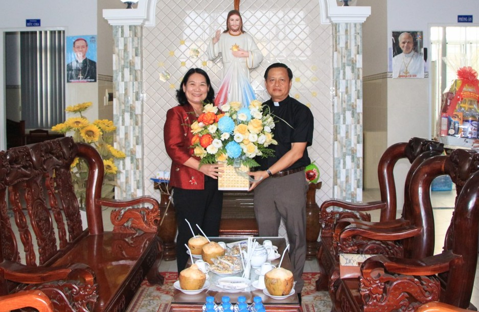 Trong không khí ấm áp, thân tình của mùa Giáng sinh, Phó Chủ tịch UBND tỉnh Nguyễn Thị Bé Mười đã gửi lời thăm hỏi ân cần, chúc Linh mục, các vị chức sắc, chức việc cùng toàn thể bà con giáo dân đón một mùa Giáng sinh an lành, hạnh phúc, tràn đầy niềm vui.
