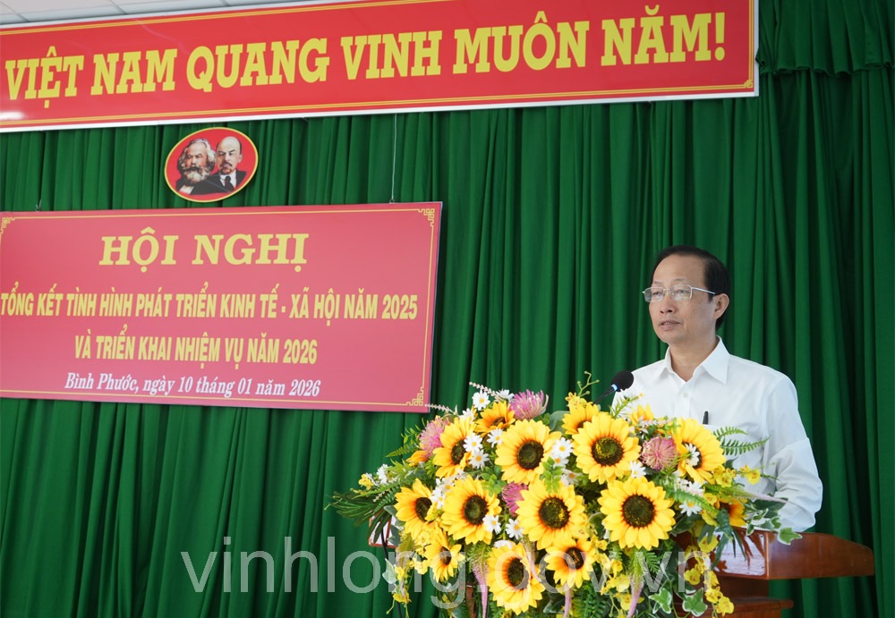 Phát biểu chỉ đạo tại hội nghị, đồng chí Nguyễn Trúc Sơn, Ủy viên Ban Thường vụ Tỉnh ủy, Phó Chủ tịch UBND tỉnh ghi nhận và biểu dương những nỗ lực, cố gắng của tập thể UBND xã Bình Phước cùng các ngành liên quan trong việc triển khai và hoàn thành các nhiệm vụ được giao trong năm 2025.