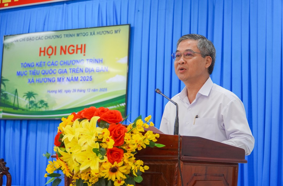 Phát biểu chỉ đạo hội nghị, đồng chí Châu Văn Hòa - Tỉnh ủy viên, Phó Chủ tịch UBND tỉnh, Phó Trưởng ban Thường trực Ban Chỉ đạo các CTMTQG tỉnh ghi nhận và biểu dương những nỗ lực của Đảng bộ, chính quyền và Nhân dân xã Hương Mỹ trong triển khai thực hiện các CTMTQG năm 2025.