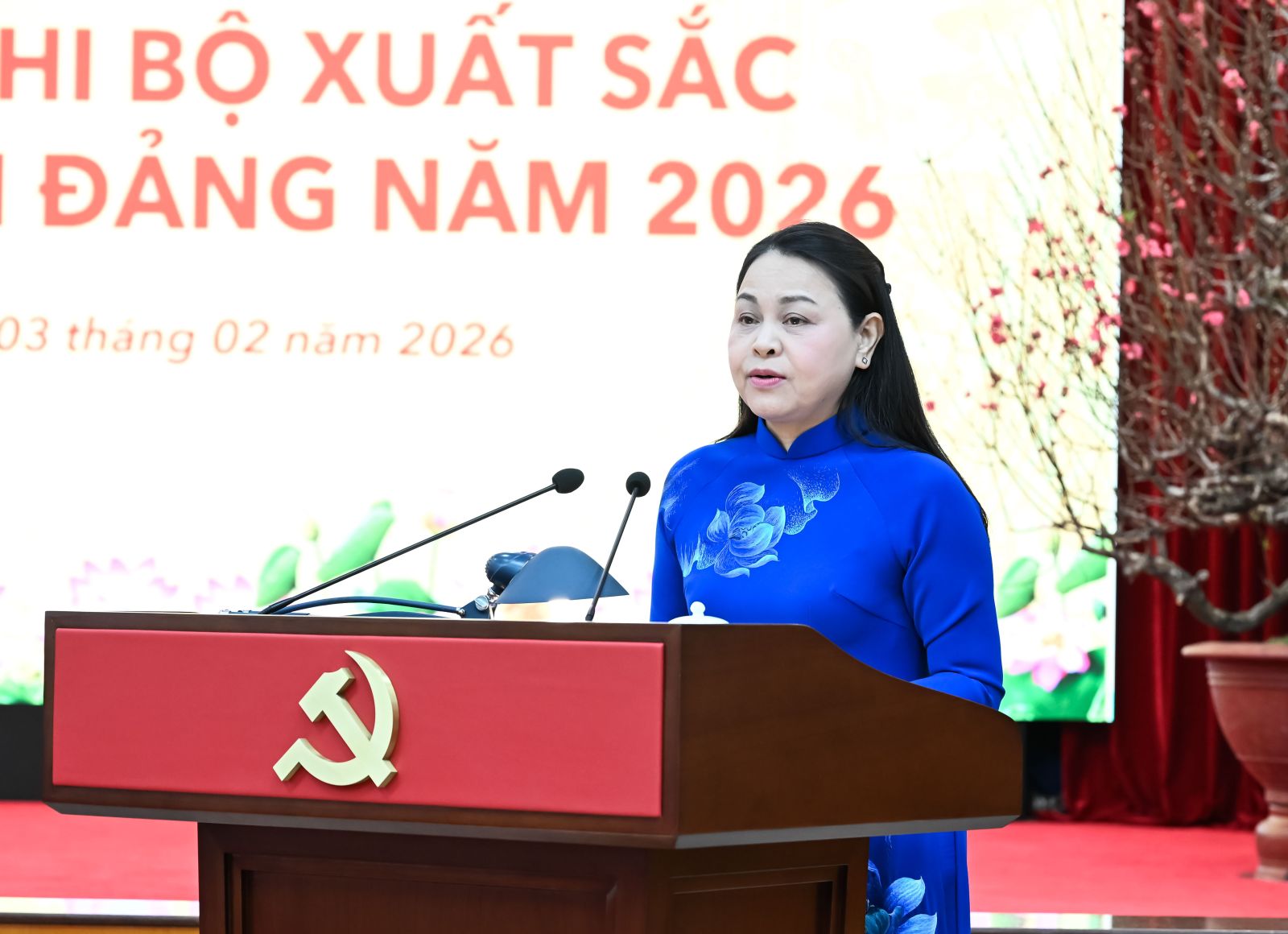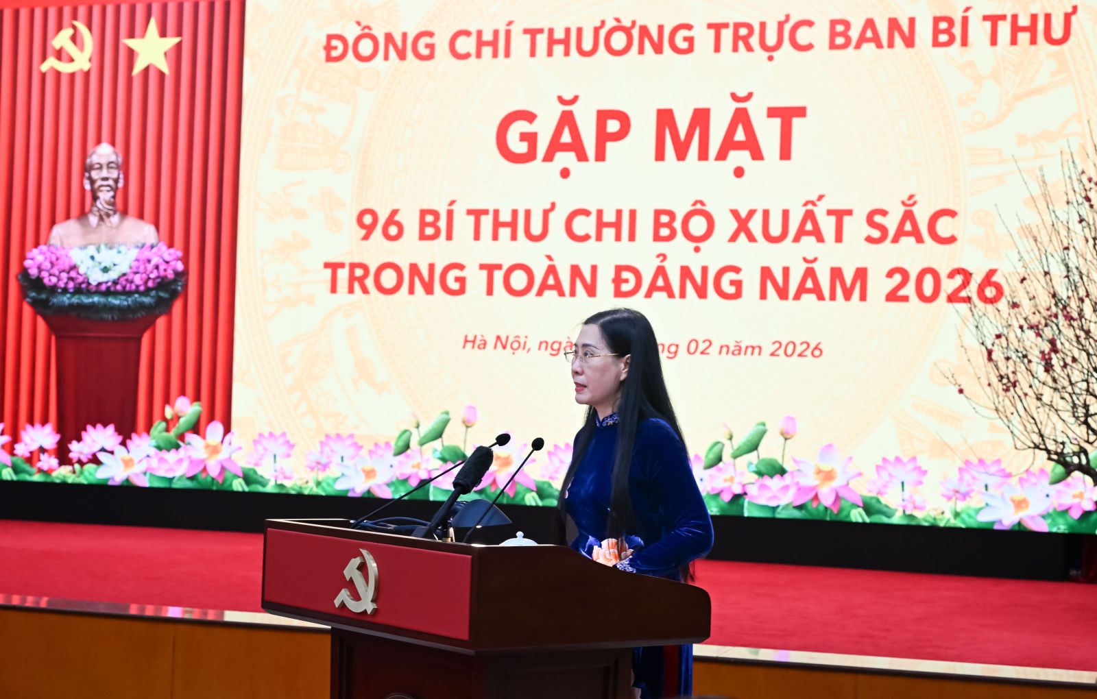 Đồng chí Trần Cẩm Tú, Ủy viên Bộ Chính trị, Thường trực Ban Bí thư chủ trì buổi gặp mặt 96 Bí thư chi bộ xuất sắc trong toàn Đảng năm 2026.