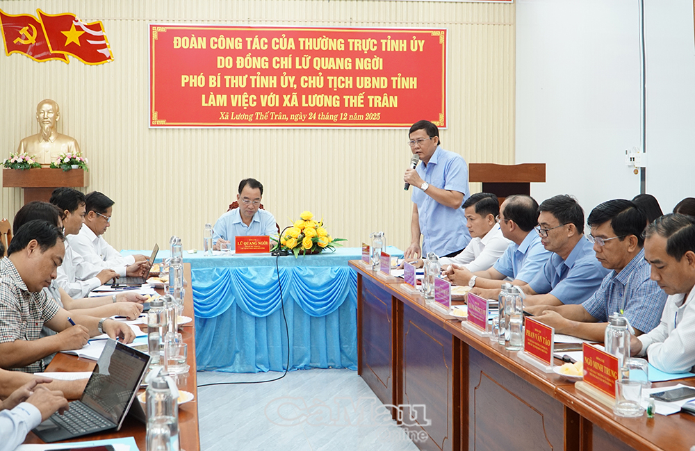 Đây là nhấn mạnh của đồng chí Lữ Quang Ngời, Phó Bí thư Tỉnh uỷ, Chủ tịch UBND tỉnh Cà Mau tại buổi làm việc với Đảng uỷ Xã Lương Thế Trân ngày 24/12.