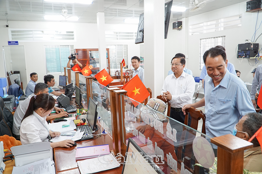 Chủ tịch UBND tỉnh Lữ Quang Ngời cùng đoàn công tác kiểm tra tình hình hoạt động của Trung tâm Phục vụ hành chính công của xã, đồng thời trực tiếp ghi nhận thực tiễn, động viên người dân và đội ngũ cán bộ, công chức Xã Lương Thế Trân.