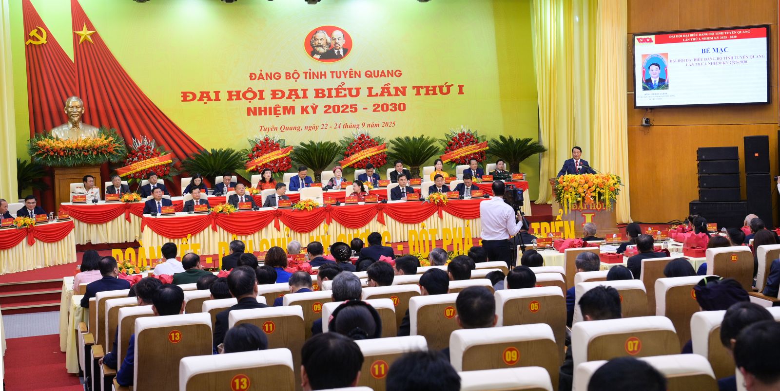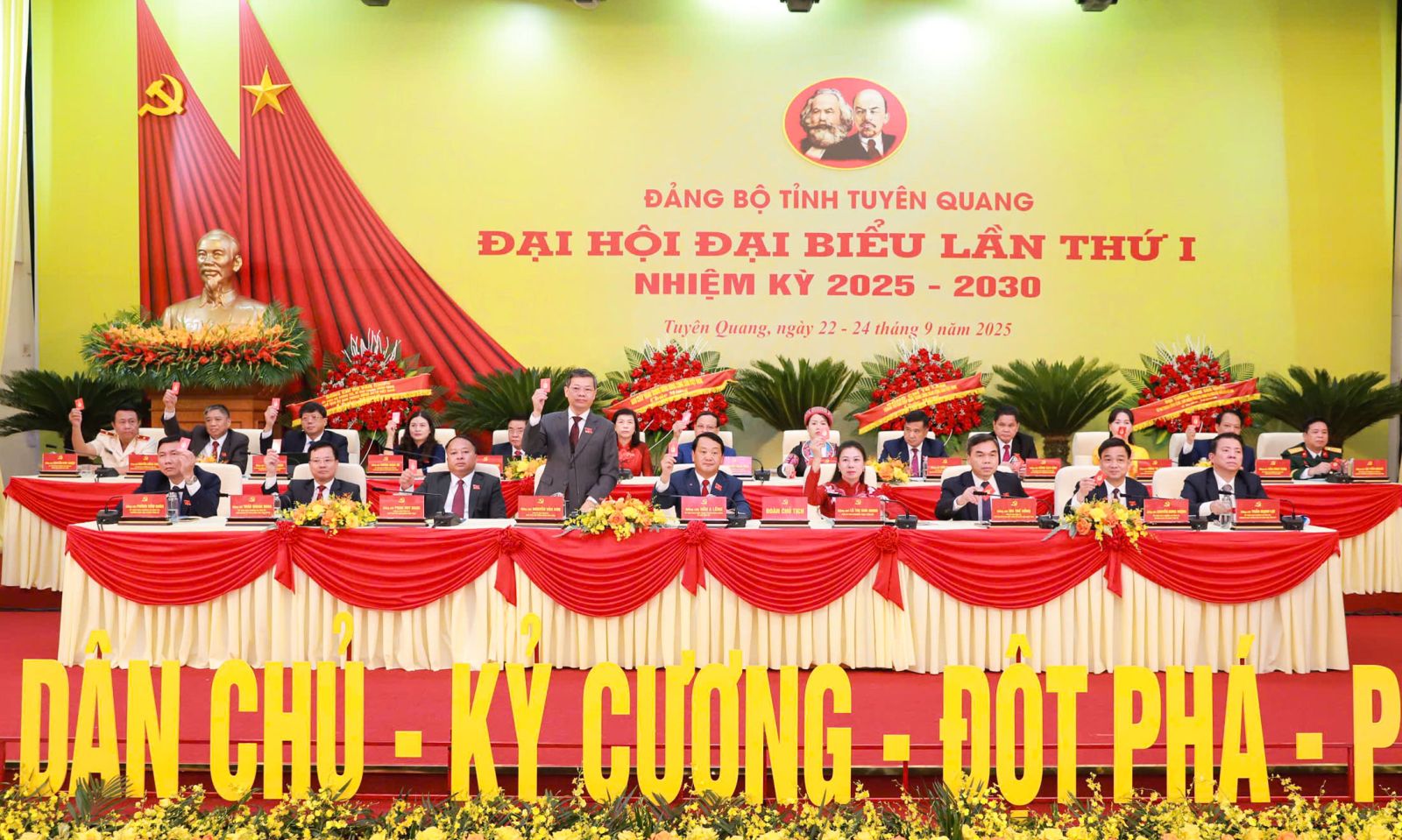 Sau hai ngày làm việc tích cực, khẩn trương, nghiêm túc, với tinh thần đoàn kết, trách nhiệm cao trước Đảng bộ và Nhân dân các dân tộc trong tỉnh, chiều 24/9, Đại hội đại biểu Đảng bộ tỉnh Tuyên Quang lần thứ I, nhiệm kỳ 2025 - 2030 đã hoàn thành tốt đẹp nội dung chương trình đề ra.