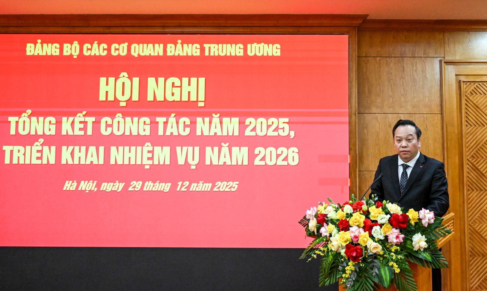 (ĐCSVN) - Chiều 29/12, Đảng bộ các cơ quan Đảng Trung ương tổ chức Hội nghị tổng kết công tác năm 2025, triển khai nhiệm vụ năm 2026. Đồng chí Trần Cẩm Tú, Ủy viên Bộ Chính trị, Thường trực Ban Bí thư, Bí thư Đảng ủy các cơ quan Đảng Trung ương chủ trì và phát biểu chỉ đạo Hội nghị.