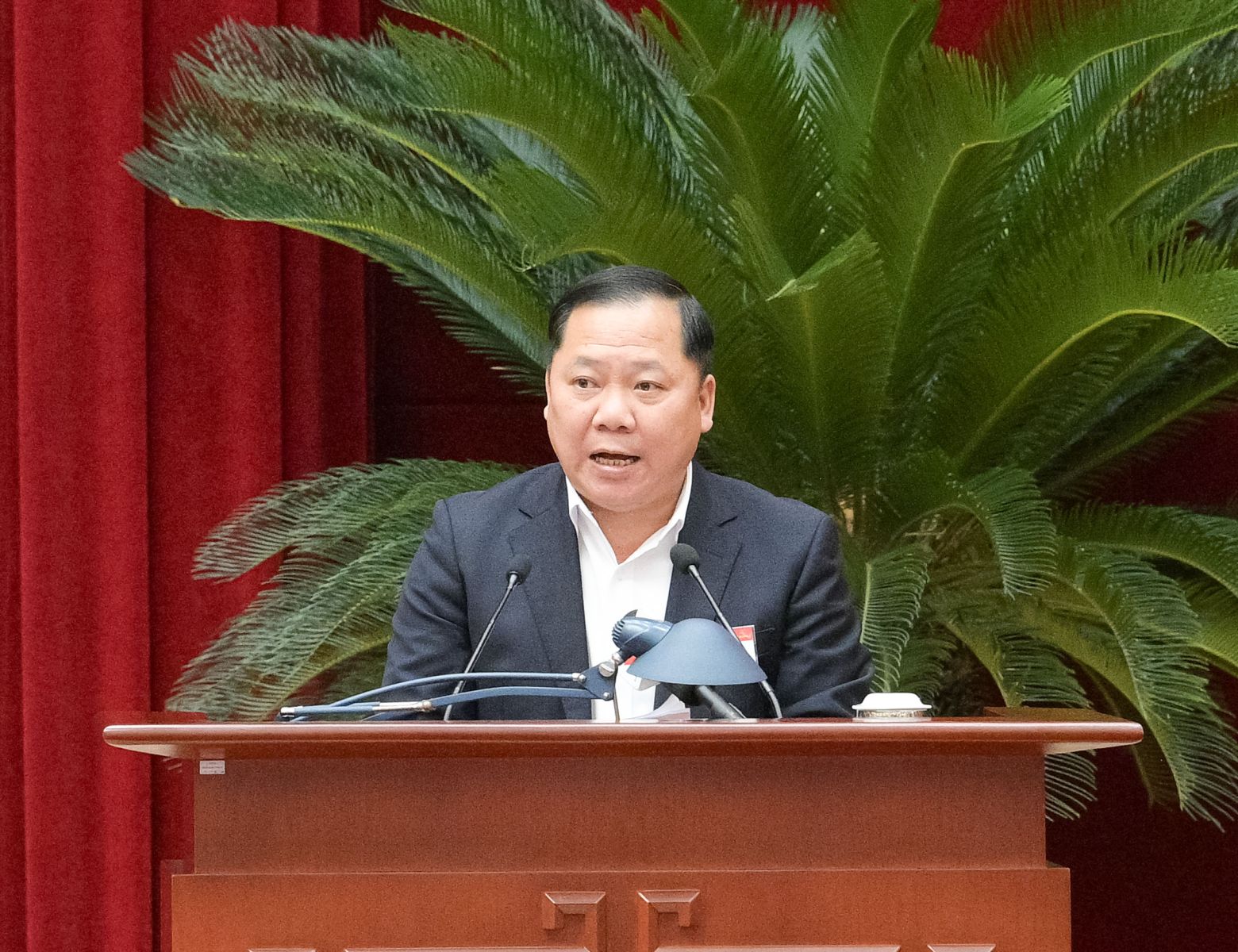 Đồng chí Hoàng Đăng Quang, Ủy viên Trung ương Đảng, Phó Trưởng Ban Thường trực Ban Tổ chức Trung ương điều hành phần tham luận tại Hội nghị.