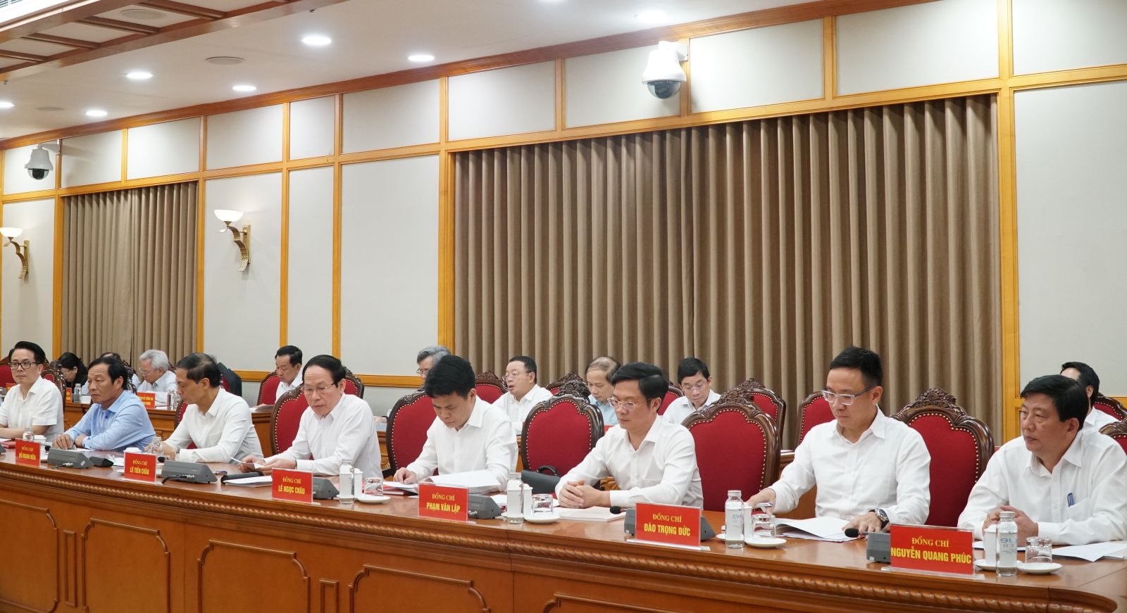 Tại buổi làm việc, sau khi nghe đại diện Ban Thường vụ Thành uỷ Hải Phòng và Tỉnh uỷ Quảng Ngãi báo cáo dự thảo các văn kiện và đề án nhân sự nhiệm kỳ 2025 - 2030, báo cáo tiếp thu, giải trình ý kiến đóng góp của các ban, bộ, ngành Trung ương, các đồng chí Uỷ viên Bộ Chính trị, Uỷ viên Ban Bí thư đã cho ý kiến về những vấn đề quan trọng của Báo cáo chính trị như các đánh giá, nhận định chủ yếu; phương hướng, mục tiêu, nhiệm vụ, giải pháp lớn; các định hướng lớn nêu trong Dự thảo Báo cáo chính trị trình Đại hội XIV của Đảng có liên quan trực tiếp đến đảng bộ địa phương. Cho ý kiến chủ yếu về tính nghiêm túc, tính chiến đấu trong tự phê bình và phê bình của cấp uỷ; về nội dung và phương thức lãnh đạo; những kinh nghiệm tốt, cách làm mới trong lãnh đạo, chỉ đạo của cấp uỷ và nhất là việc thực hiện nhiệm vụ chính trị tại địa phương. Góp ý các giải pháp giải quyết các hạn chế, khuyết điểm, điểm nghẽn phát triển của địa phương và gợi mở, bổ sung định hướng về nhiệm vụ, giải pháp, phương thức lãnh đạo, kinh nghiệm, cách làm mới trong lãnh đạo, chỉ đạo trong nhiệm kỳ 2025 - 2030.