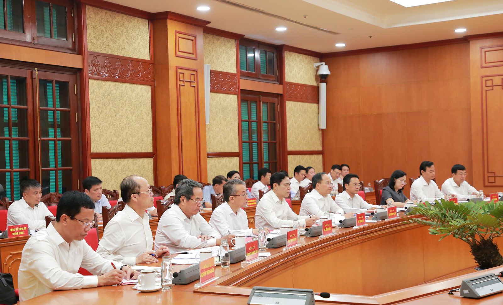 (ĐCSVN) - Chiều ngày 04/9, tại Trụ sở Trung ương Đảng, Tổ Công tác số 3 và số 4 của Bộ Chính trị làm việc với đại diện các Ban Thường vụ Tỉnh uỷ, Thành uỷ: Lai Châu, Hà Tĩnh, Cần Thơ để cho ý kiến vào các dự thảo văn kiện và phương án nhân sự cấp uỷ trình Đại hội đại biểu Đảng bộ tỉnh, thành phố nhiệm kỳ 2025 - 2030.