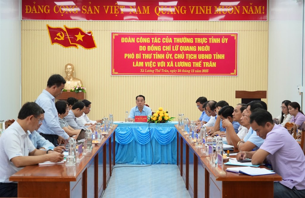 Sáng 24/12, đoàn công tác do Phó Bí thư Tỉnh ủy, Chủ tịch UBND tỉnh Lữ Quang Ngời làm trưởng đoàn đã có buổi làm việc với Ban Thường vụ Đảng ủy Xã Lương Thế Trân về tình hình triển khai thực hiện các mặt công tác từ khi thực hiện chính quyền địa phương 02 cấp.