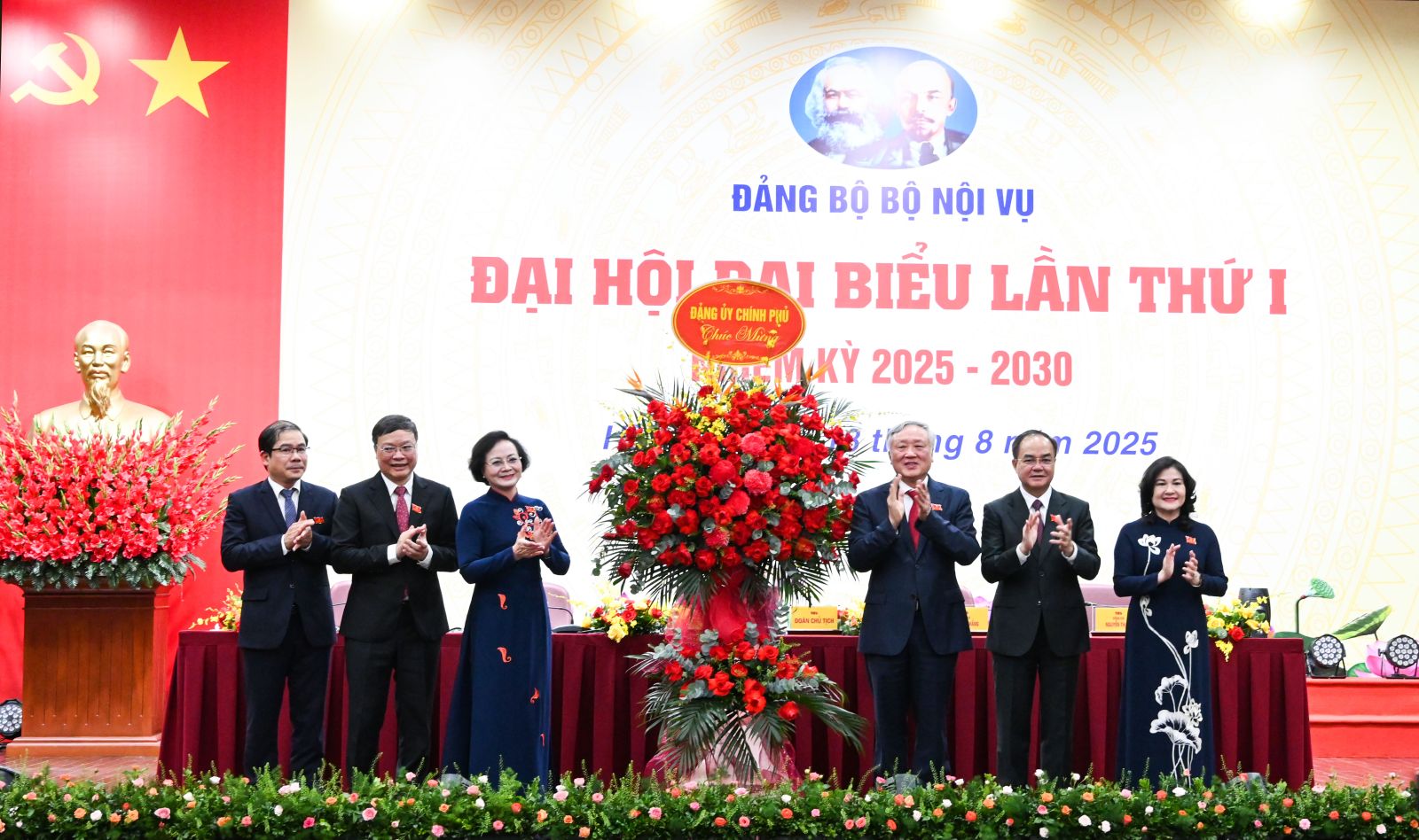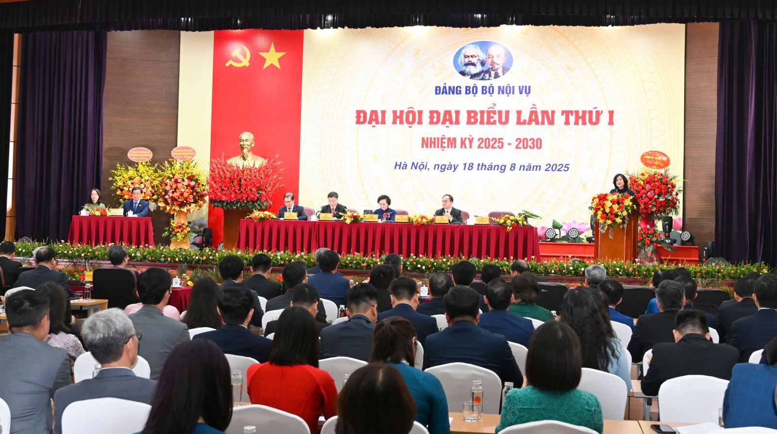 Phát biểu khai mạc Đại hội, Bộ trưởng Bộ Nội vụ Phạm Thị Thanh Trà nhấn mạnh: Đại hội đại biểu lần thứ I Đảng bộ Bộ Nội vụ (nhiệm kỳ 2025-2030) diễn ra trong thời điểm mà Đảng, Nhà nước và cả hệ thống chính trị đã và đang triển khai những quyết sách có ý nghĩa lịch sử, đột phá chiến lược để đưa đất nước vững bước vào kỷ nguyên phát triển giàu mạnh và thịnh vượng, với điểm nhấn là cuộc cách mạng về tổ chức bộ máy, sắp xếp lại đơn vị hành chính, tổ chức mô hình chính quyền địa phương 2 cấp; tư duy rộng mở về phát triển khoa học, công nghệ, đổi mới sáng tạo và chuyển đổi số; đẩy mạnh hội nhập quốc tế; tư duy mới về xây dựng pháp luật, phát triển kinh tế tư nhân, tạo động lực, nền tảng quan trọng cho sự phát triển mạnh mẽ của đất nước nói chung, Bộ và ngành Nội vụ nói riêng.