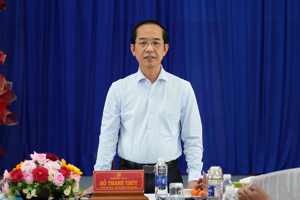 Phó Bí thư Tỉnh ủy, Chủ tịch Ủy ban Mặt trận Tổ quốc Việt Nam tỉnh Cà Mau Hồ Thanh Thủy phát biểu tại buổi làm việc.