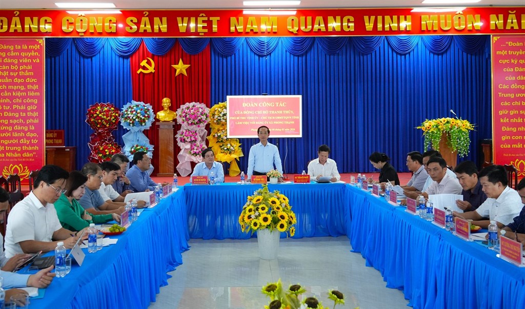 Đoàn công tác của Thường trực Tỉnh ủy làm việc với xã Vĩnh Hậu và xã Phong Thạnh về vận hành chính quyền địa phương 2 cấp