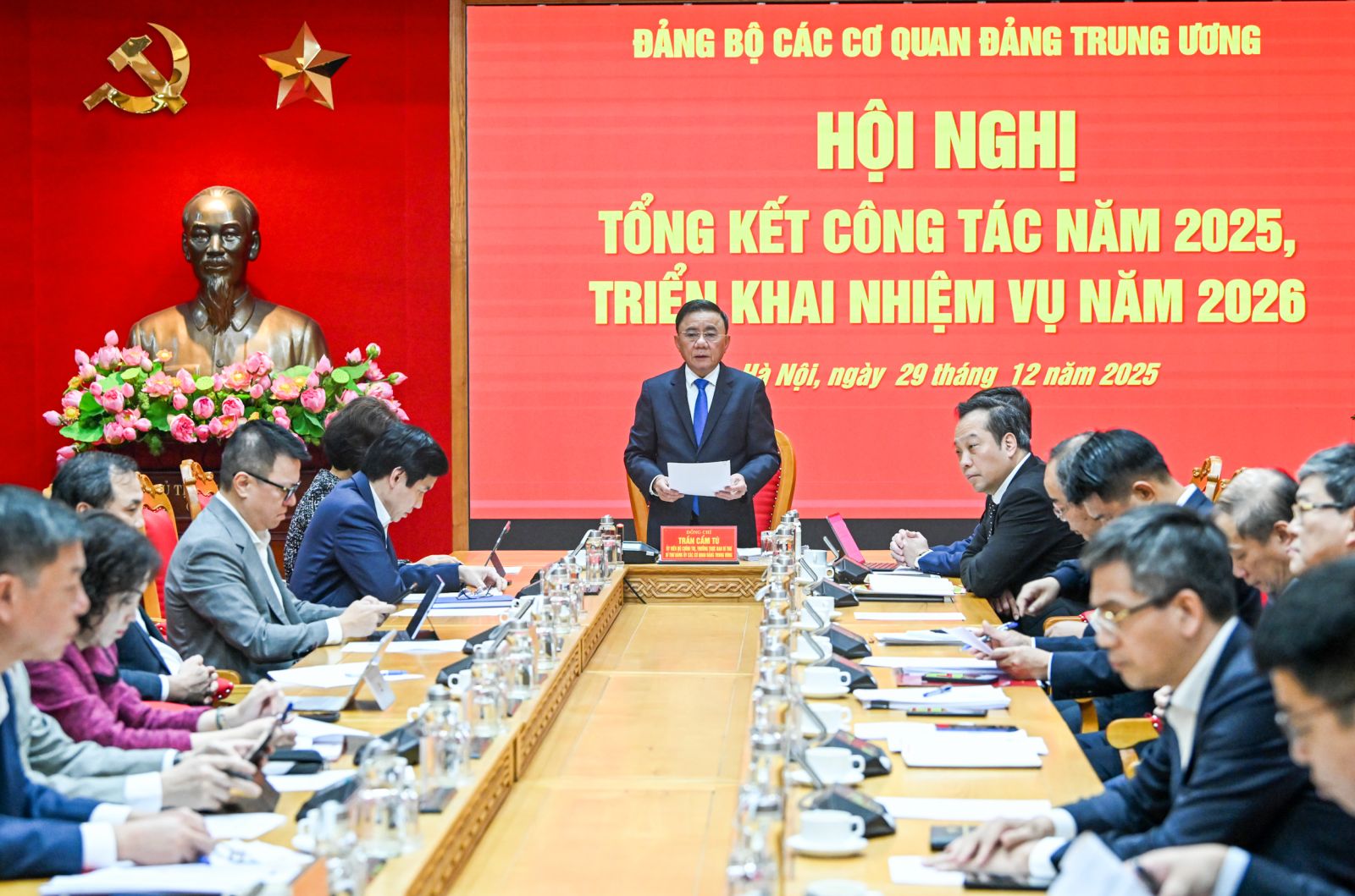 (ĐCSVN) - Chiều 29/12, Đảng bộ các cơ quan Đảng Trung ương tổ chức Hội nghị tổng kết công tác năm 2025, triển khai nhiệm vụ năm 2026. Đồng chí Trần Cẩm Tú, Ủy viên Bộ Chính trị, Thường trực Ban Bí thư, Bí thư Đảng ủy các cơ quan Đảng Trung ương chủ trì Hội nghị.