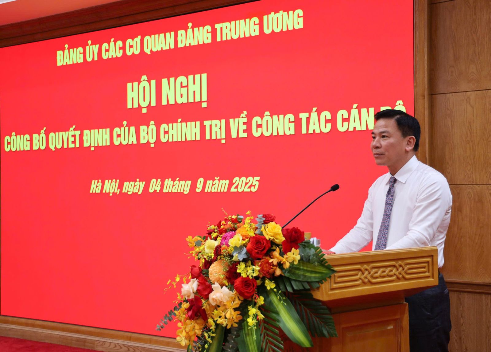 Đồng chí Nguyễn Long Hải, Phó Bí thư Đảng ủy các cơ quan Đảng Trung ương phát biểu nhận nhiệm vụ