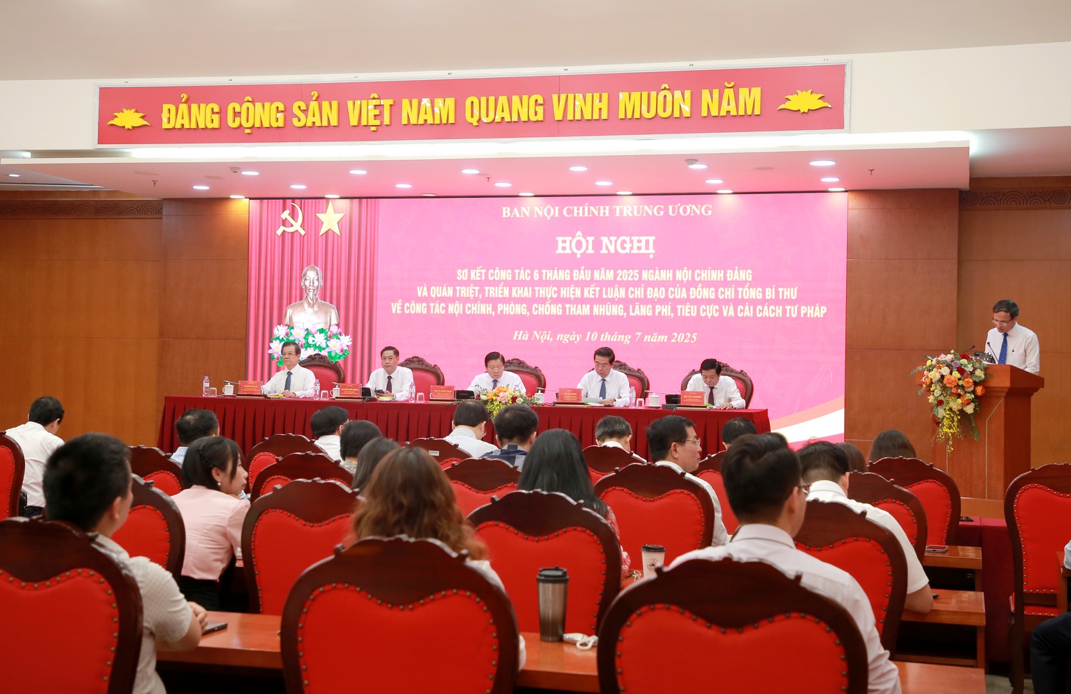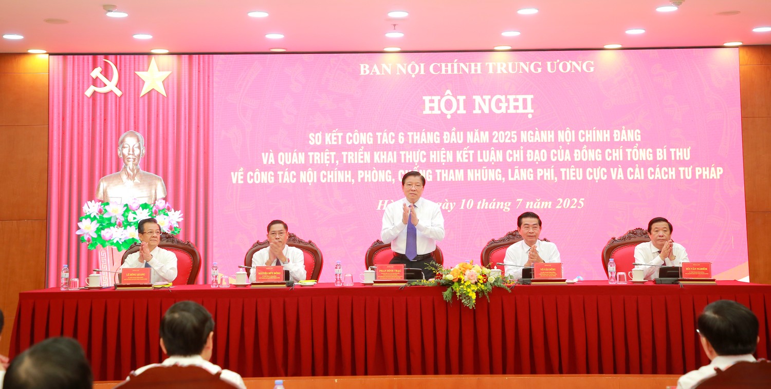 Sáng 10/7, đồng chí Phan Đình Trạc, Ủy viên Bộ Chính trị, Bí thư Trung ương Đảng, Trưởng Ban Nội chính Trung ương; Phó Trưởng ban Thường trực Ban Chỉ đạo Trung ương về phòng, chống tham nhũng, lãng phí, tiêu cực; Phó Trưởng ban Thường trực Ban Chỉ đạo Cải cách tư pháp Trung ương chủ trì Hội nghị sơ kết công tác 6 tháng đầu năm 2025 của Ngành Nội chính Đảng và triển khai Kế hoạch quán triệt, thực hiện Kết luận chỉ đạo của Tổng Bí thư Tô Lâm về công tác nội chính, phòng chống tham nhũng, lãng phí, tiêu cực và cải cách tư pháp. Hội nghị được tổ chức trực tiếp kết hợp trực tuyến tới tất cả các tỉnh ủy, thành ủy, Đảng ủy trực thuộc Trung ương.