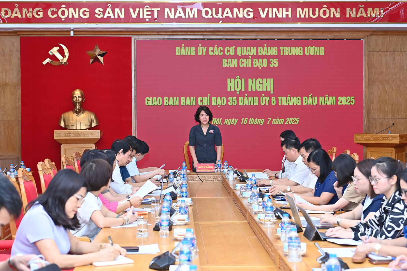 Đồng chí Nguyễn Thị Hoàng Vân, Phó Bí thư Đảng ủy các cơ quan Đảng Trung ương, Trưởng Ban Chỉ đạo 35 Đảng ủy chủ trì hội nghị. Dự hội nghị có các đồng chí đại diện Ban Chỉ đạo 35 Trung ương; thành viên Ban Chỉ đạo 35 và Tổ thư ký Ban Chỉ đạo 35 Đảng ủy.