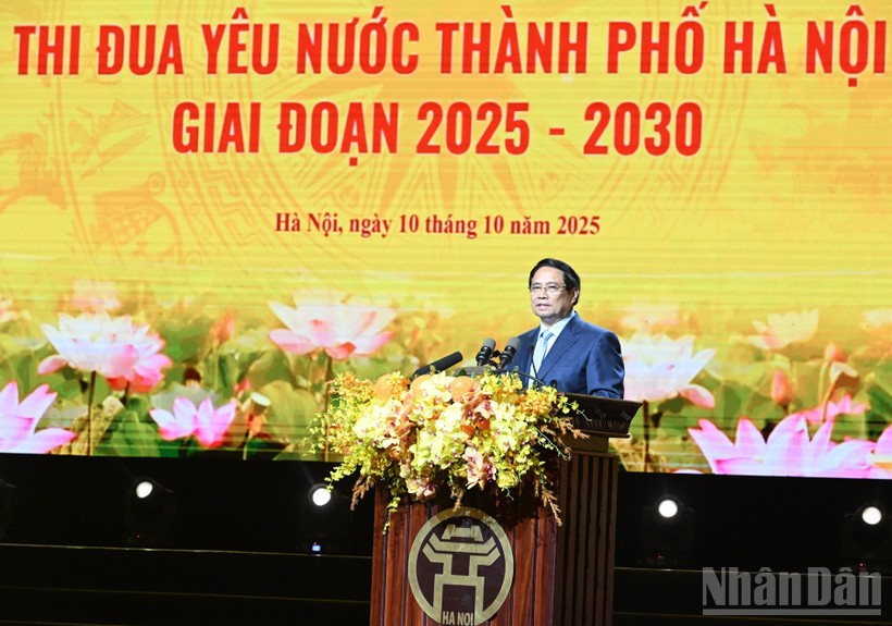 Phát biểu ý kiến tại Đại hội, Thủ tướng Phạm Minh Chính nhấn mạnh, trong khí thế sôi nổi, hào hùng kỷ niệm 71 năm Ngày Giải phóng Thủ đô, cả nước đang ra sức thi đua lập thành tích chào mừng Đại hội XIV của Đảng và Đại hội Thi đua yêu nước toàn quốc lần thứ XI, tại Thủ đô Hà Nội “ngàn năm văn hiến anh hùng” - Thành phố vì hòa bình, Thành phố của lương tri và phẩm giá con người, trái tim của cả nước, Thủ tướng rất vui mừng và xúc động đến dự Đại hội thi đua yêu nước thành phố Hà Nội giai đoạn 2025-2030 - một sự kiện chính trị-xã hội quan trọng, diễn đàn tôn vinh tinh thần yêu nước, khát vọng vươn lên và sức mạnh đại đoàn kết của Đảng bộ, chính quyền, quân và dân Thủ đô anh hùng.