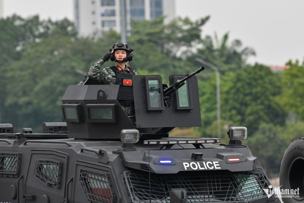Cũng tại buổi diễn tập, dàn khí tài hiện đại của lực lượng Công an được trình diễn, thu hút sự chú ý của những người xung quanh.