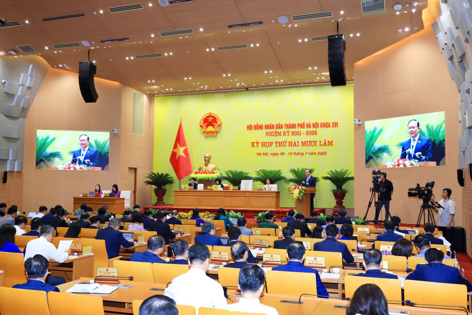 (ĐCSVN) - Sáng 8/7, HĐND thành phố (TP) Hà Nội khóa XVI, nhiệm kỳ 2021-2026 tổ chức kỳ họp thứ hai mươi lăm (kỳ họp thường lệ giữa năm 2025) để xem xét tình hình phát triển kinh tế - xã hội 6 tháng đầu năm; nhiệm vụ 6 tháng cuối năm 2025 và các vấn đề khác thuộc thẩm quyền.