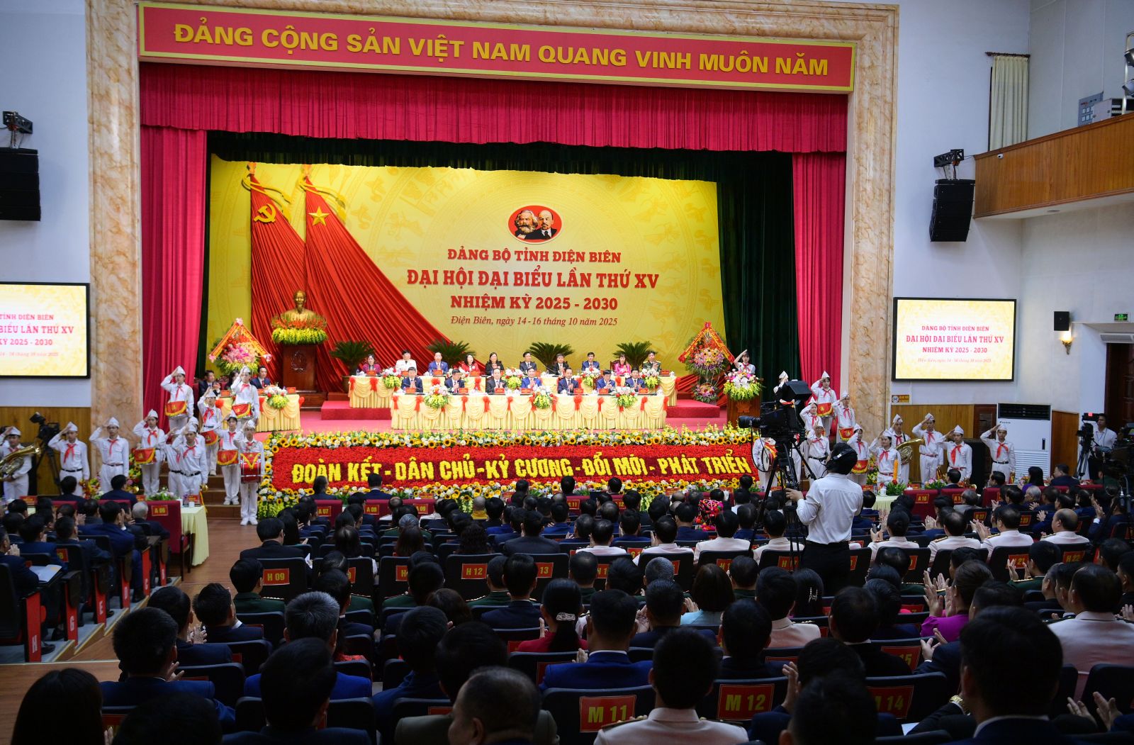 (ĐCSVN) - Sáng 15/10, tại Trung tâm Hội nghị Văn hóa tỉnh, Đại hội đại biểu Đảng bộ tỉnh Điện Biên lần thứ XV, nhiệm kỳ 2025-2030 đã khai mạc trọng thể với phương châm “Đoàn kết - Dân chủ - Kỷ cương - Đổi mới - Phát triển”. Đây là sự kiện chính trị đặc biệt quan trọng, đánh dấu mốc son mới trong quá trình xây dựng và phát triển của Đảng bộ, chính quyền và Nhân dân các dân tộc tỉnh Điện Biên.