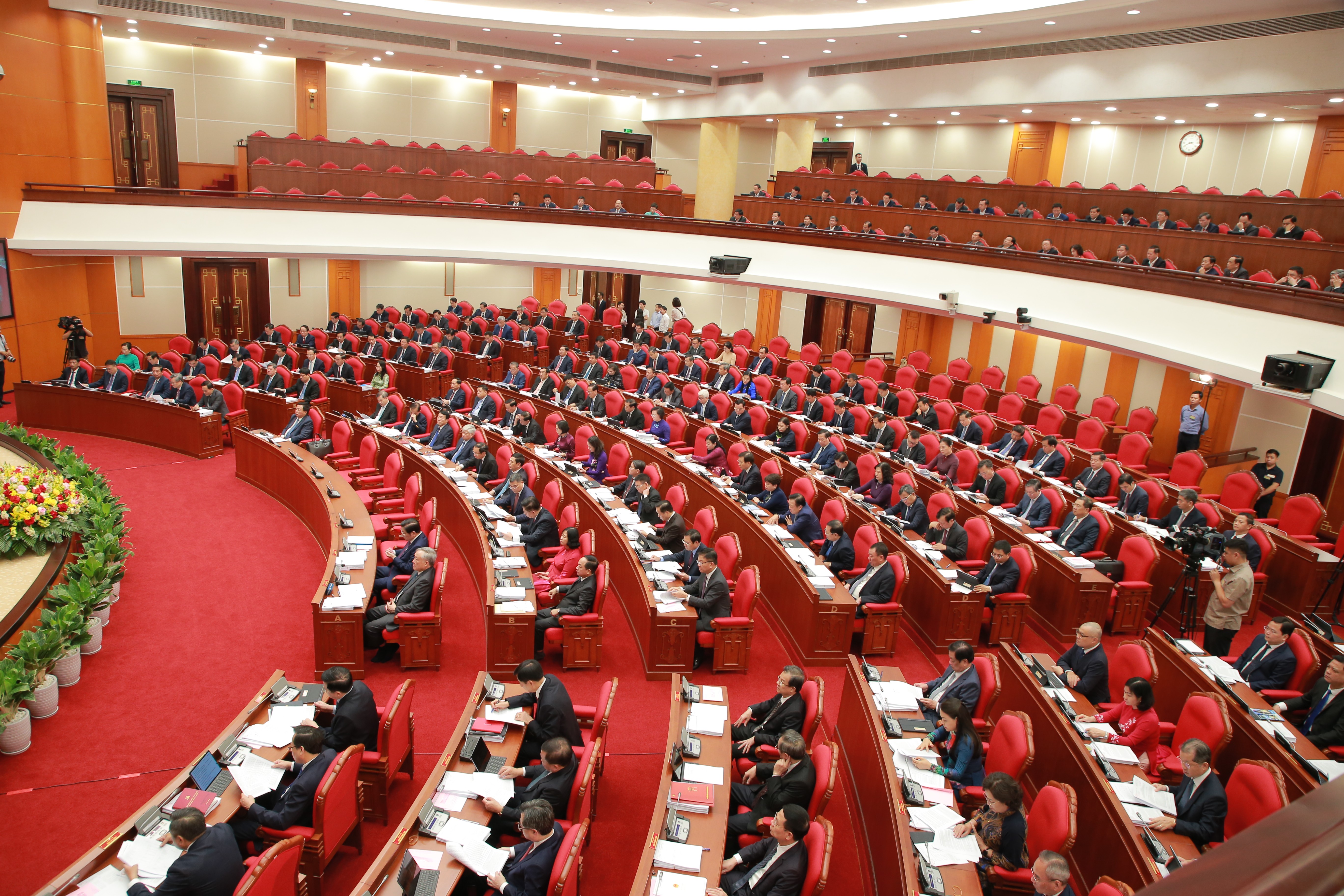 Buổi chiều, Trung ương làm việc tại Hội trường, thảo luận về những nội dung Trung ương đã thảo luận tại tổ trong buổi sáng. Đồng chí Phạm Minh Chính, Uỷ viên Bộ Chính trị, Thủ tướng Chính phủ, thay mặt Bộ Chính trị điều hành Hội nghị.
