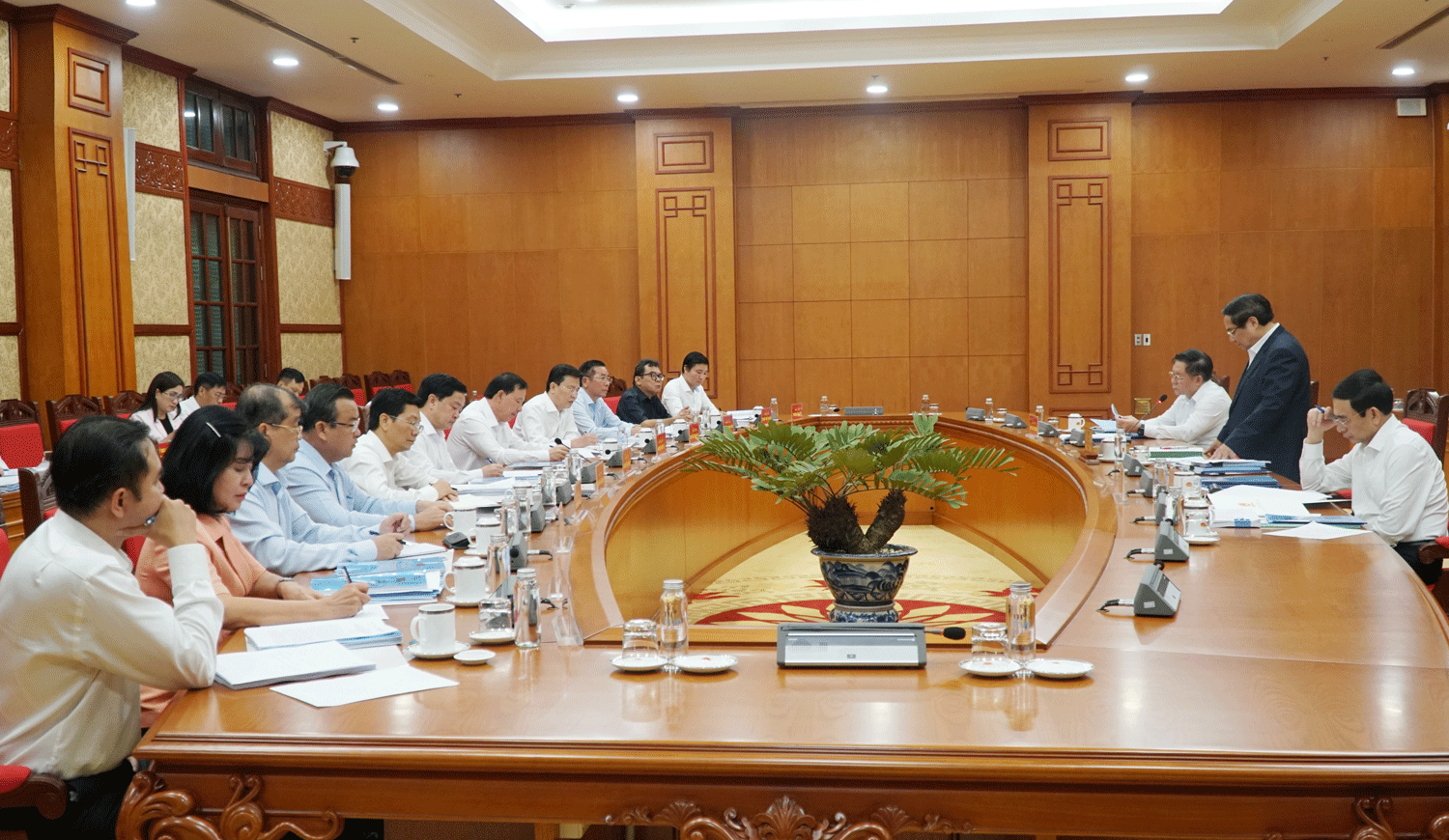 Tổ Công tác số 2 do đồng chí Phạm Minh Chính, Uỷ viên Bộ Chính trị, Thủ tướng Chính phủ chủ trì. Cùng dự buổi làm việc có các đồng chí: Nguyễn Trọng Nghĩa, Uỷ viên Bộ Chính trị, Bí thư Trung ương Đảng, Trưởng Ban Tuyên giáo và Dân vận Trung ương; Phan Văn Giang, Uỷ viên Bộ Chính trị, Bộ trưởng Bộ Quốc phòng.