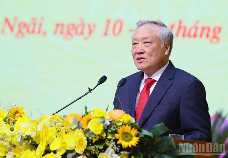 Thay mặt lãnh đạo Đảng, Nhà nước, đồng chí Nguyễn Hòa Bình biểu dương và chúc mừng những thành tựu mà Đảng bộ, chính quyền và nhân dân tỉnh Quảng Ngãi đạt được trong nhiệm kỳ vừa qua.